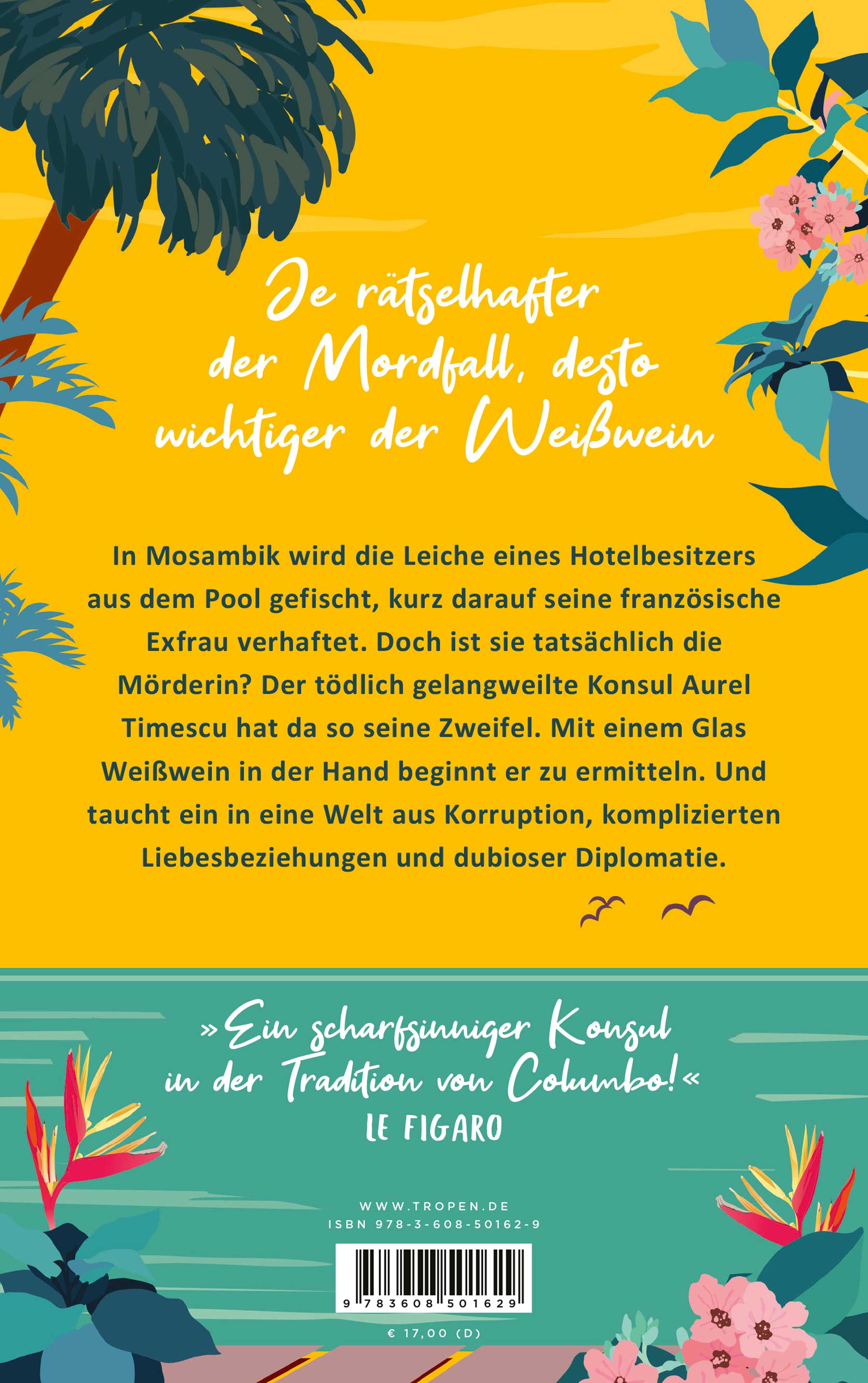 In Mosambik wird die Leiche eines Hotelbesitzers aus dem Pool gefischt, kurz darauf seine französische Exfrau verhaftet. Doch ist sie tatsächlich die Mörderin? Der tödlich gelangweilte Konsul Aurel Timescu hat da so seine Zweifel. Mit einem Glas Weißwein in der Hand beginnt er zu ermitteln. Und taucht ein in eine Welt aus Korruption, komplizierten Liebesbeziehungen und dubioser Diplomatie.