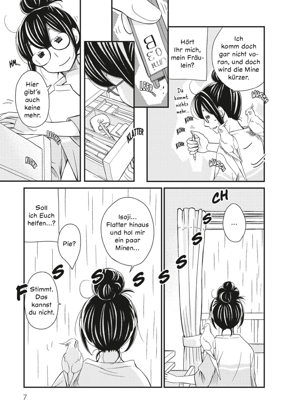 Für den neugierigen Nymphensittich Isoji ist jeder Tag ein Abenteuer. Ob sein Frauchen Yae das auch so sieht...? Aber klar! Die Zeichnerin liebt ihr quietschgelbes Haustier mit dem weichen Federkleid, den süßen roten Bäckchen und der frechen Federhaube. Der kleine Papagei hat bei der Entdeckung der Welt so manchen Unfug und Spaß im Kopf - bleibt dabei aber immer äußerst höflich.