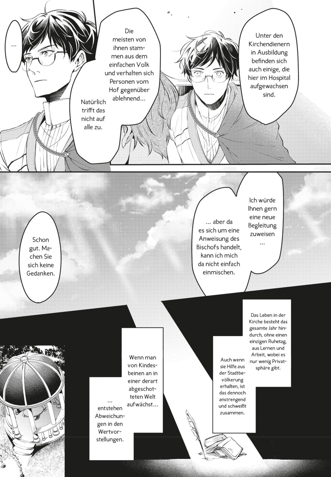 Seiichiro wurde dazu abgeordnet, eine Inspektion in der Kirche durchzuführen, wo er ein nicht immer gern gesehener Gast ist. Ohne ihn stattfinden muss hingegen die dritte und letzte Expedition zur Läuterung des Miasmas. Kommandant Alesh hingegen hat sich wieder auf diese Reise begeben, und so verbringen er und Seiichiro nun zum ersten Mal seit ihrem Zusammenziehen eine längere Zeit ohneeinander. Während Sei derweil einem großen Geheimnis auf die Spur zu kommen scheint, nimmt Alesh die Fährte gefährlicher magischer Bestien auf...