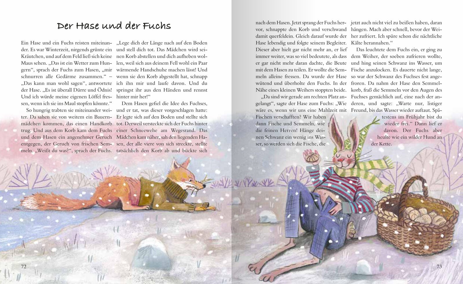 Ein Vorlesebuch für Kinder ab 4 Jahren mit Fabeln wie Der Fuchs und der Rabe und Der Löwe und die Maus, voller Lebensweisheiten, die Ethik und Moral thematisieren und Werte vermitteln. Süß illustrierte Tiergeschichten.