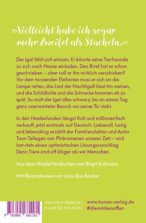 Toon Tellegen, 1941 in den Niederlanden geboren, arbeitete als Arzt in Kenia und ließ sich als Lyriker in Amsterdam nieder. Heute ist er einer der bekanntesten Schriftsteller der Niederlande. Seine ausgezeichneten Kinderbücher sind auch hierzulande beliebt. Seine lebenskluge und lustige Tierreihe um Igel, Grille und Frosch für Erwachsene hat sich weltweit mehr als 1,5 Millionen Mal verkauft.