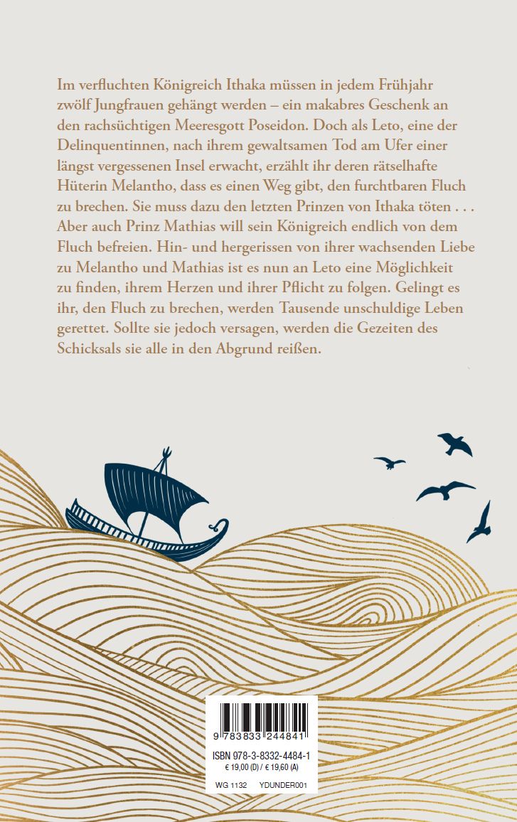 Im verfluchten Königreich Ithaka müssen in jedem Frühjahr zwölf Jungfrauen gehängt werden - ein makabres Geschenk an den rachsüchtigen Meeresgott Poseidon. Doch als Leto, eine der Delinquentinnen, nach ihrem gewaltsamen Tod am Ufer einer längst vergessenen Insel erwacht, erzählt ihr deren rätselhafte Hüterin Melantho, dass es einen Weg gibt, den furchtbaren Fluch zu brechen. Sie muss dazu den letzten Prinzen von Ithaka töten ...Aber auch Prinz Mathias will sein Königreich endlich von dem Fluch befreien. Hin- und hergerissen von ihrer wachsenden Liebe zu Melantho und Mathias ist es nun an Leto eine Möglichkeit zu finden, ihrem Herzen und ihrer Pflicht zu folgen. Gelingt es ihr, den Fluch zu brechen, werden Tausende unschuldige Leben gerettet. Sollte sie jedoch versagen, werden die Gezeiten des Schicksals sie alle in den Abgrund reißen.