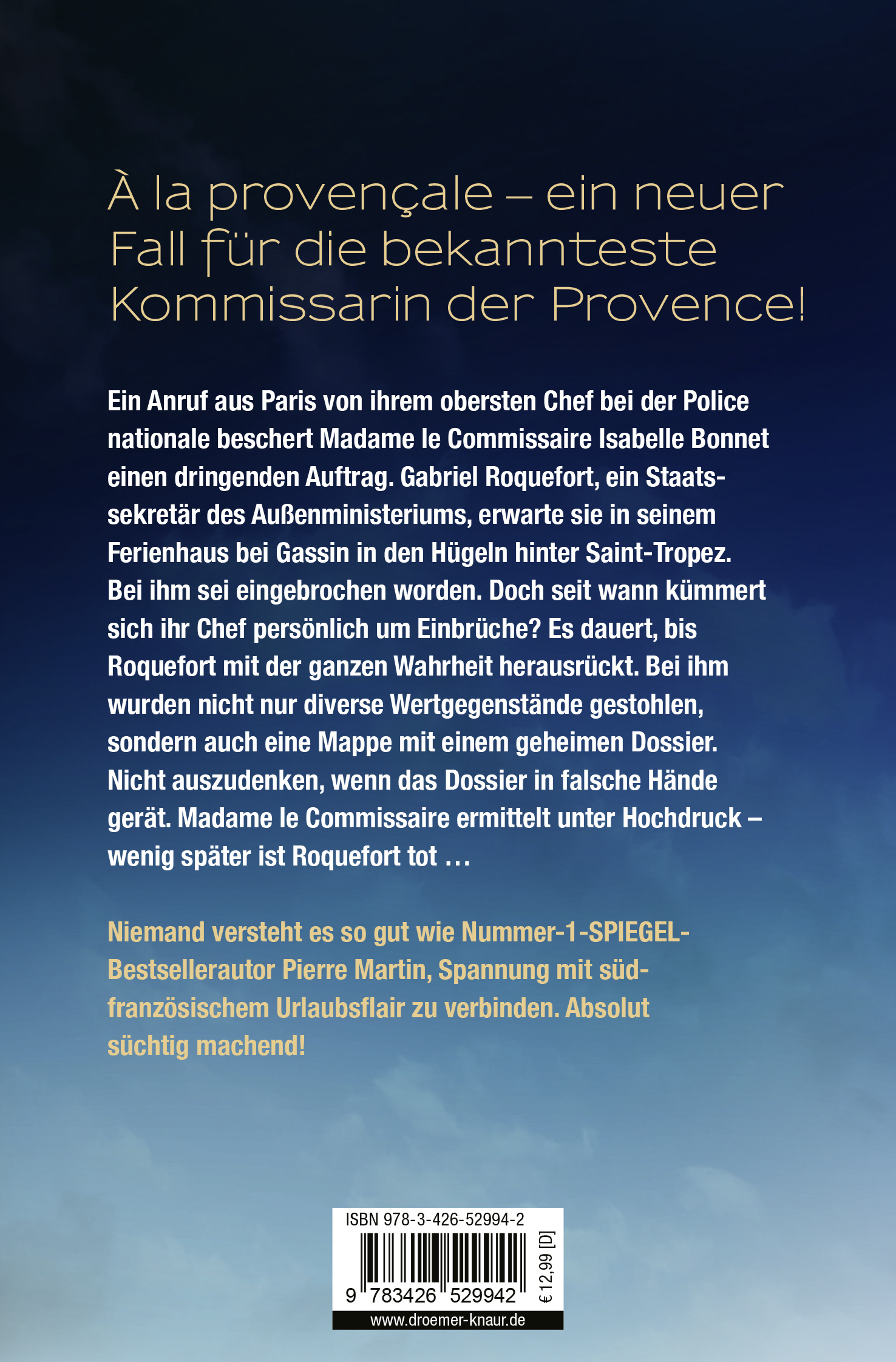 Im beschaulichen Fragolin in der Provence gehen die Uhren anders - normalerweise. Denn Madame le Commissaire Isabelle Bonnet erhält einen Anruf direkt aus Paris: Auf Geheiß des Polizeichefs soll sie mit ihrem Assistenten Apollinaire den Einbruch in eine Ferien-Villa bei Gassin in den Hügeln hinter Saint Tropez untersuchen. Nur seit wann kümmert sich der Polizeichef persönlich um Einbrüche?