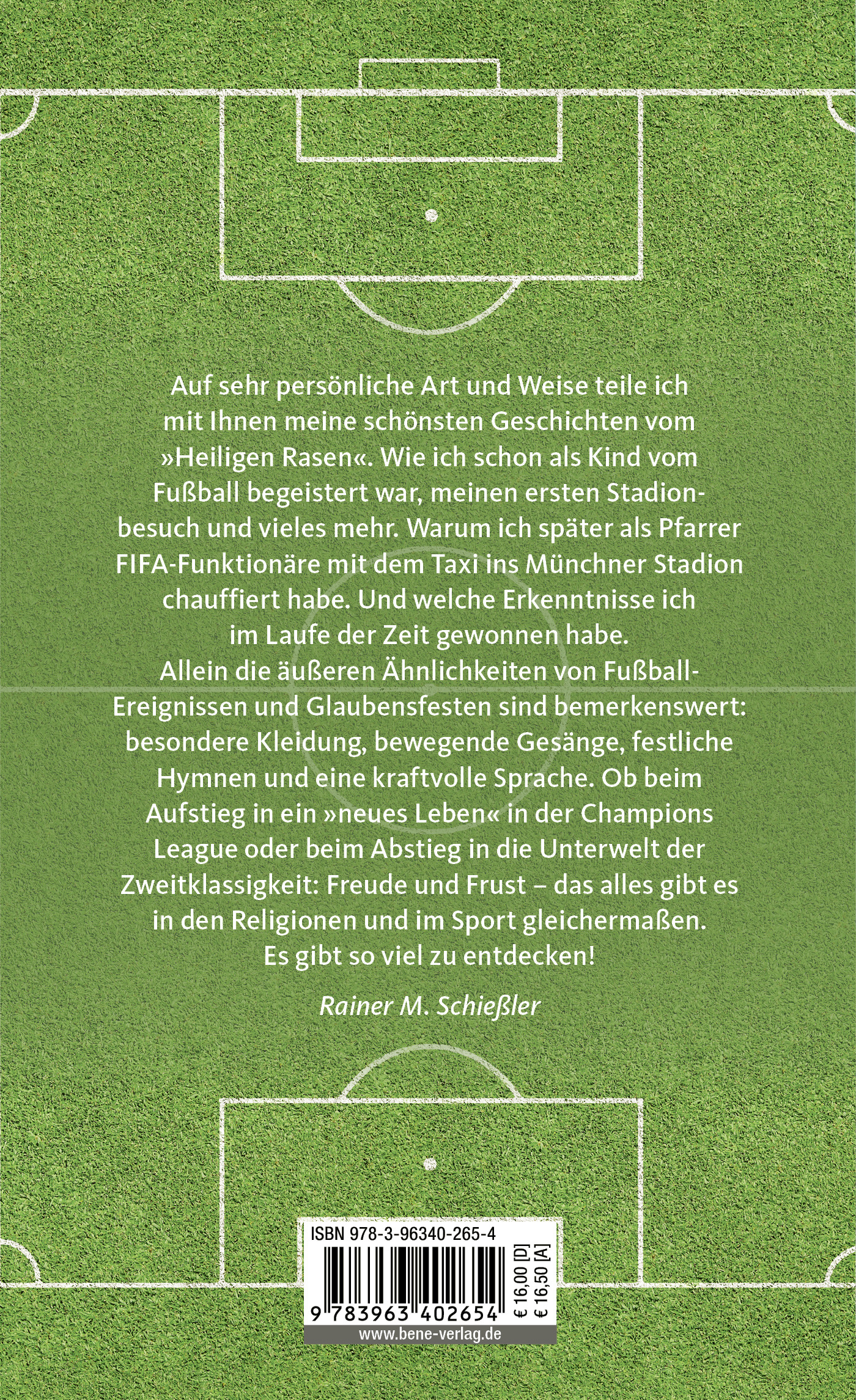 Als er sieben Jahre alt ist, läuft Rainer Maria Schießler mit einem Freund von der Trambahnstation zum Fußballstadion. Das Spiel, das die beiden sich zusammen ansehen, vergisst er nie. Seit diesem Tag ist der deutschlandweit bekannte Münchner Pfarrer begeisterter Fußballfan. Lange Zeit war er Kolumnist für die Münchner Abendzeitung und auch geschätzter Kommentator in Fußballfragen; viele Sportler kennt er auch persönlich. In diesem Buch erzählt er seine schönsten Geschichten rings um den »Heiligen Rasen« und denkt darüber nach, was für ihn Glaube und Spiel miteinander zu tun haben. Er schreibt über Fangesänge, Gemeinschaftsgefühl, bengalische Lichter und Fahnen, Glückstaumel und Ernüchterung, Siege und Niederlagen.