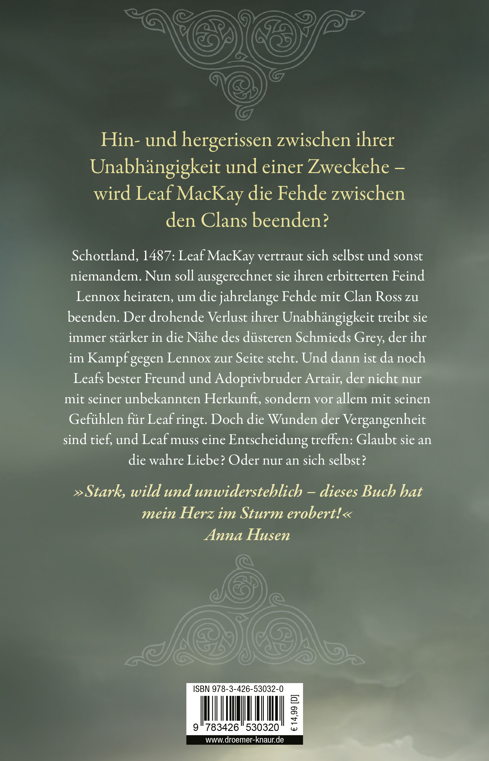 Schottland 1487: Leaf MacKay vertraut sich selbst und sonst niemandem. Nun soll ausgerechnet sie ihren erbitterten Feind Lennox heiraten, um die jahrelange Fehde mit Clan Ross zu beenden. Der drohende Verlust ihrer Unabhängigkeit treibt sie immer stärker in die Nähe des düsteren Schmieds Grey, der ihr im Kampf gegen Lennox zur Seite steht. Und dann ist da noch Leafs bester Freund und Adoptivbruder Artair, der nicht nur mit seiner unbekannten Herkunft, sondern vor allem mit seinen Gefühlen für Leaf ringt. Doch die Wunden der Vergangenheit sind tief, und Leaf muss eine Entscheidung treffen: Glaubt sie an die wahre Liebe? Oder nur an sich selbst? Hin und her gerissen zwischen ihrem Bedürfnis nach Schutz und ihrer Sehnsucht nach Liebe droht sie alles zu verlieren.