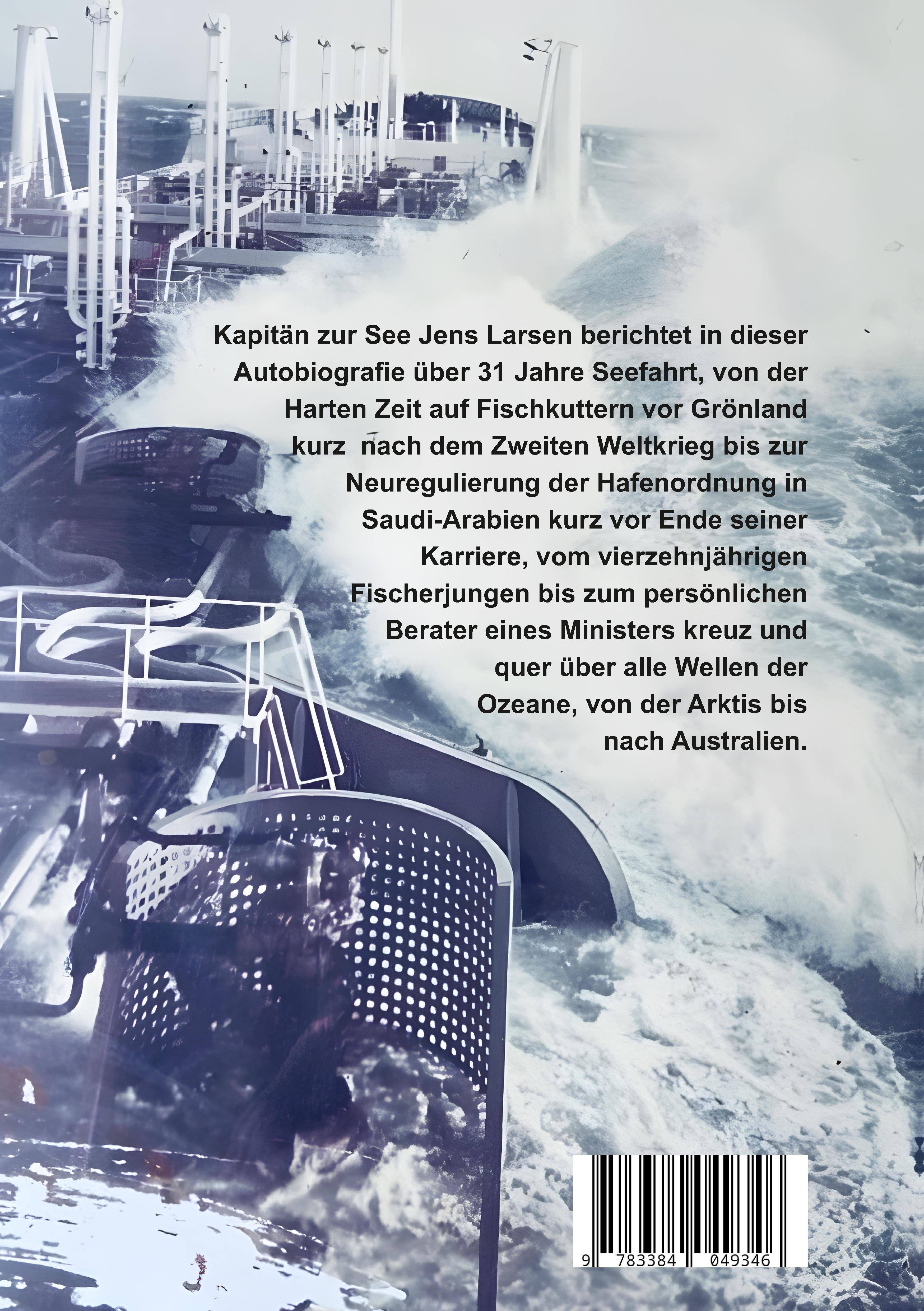 Kapitän zur See Jens Larsen berichtet in dieser Autobiografie über 31 Jahre Seefahrt, von der Harten Zeit auf Fischkuttern vor Grönland kurz nach dem Zweiten Weltkrieg bis zur Neuregulierung der Hafenordnung in Saudi-Arabien kurz vor Ende seiner Karriere, vom vierzehnjährigen Fischerjungen bis zum persönlichen Berater eines Ministers kreuz und quer über alle Wellen der Ozeane, von der Arktis bis nach Australien.
