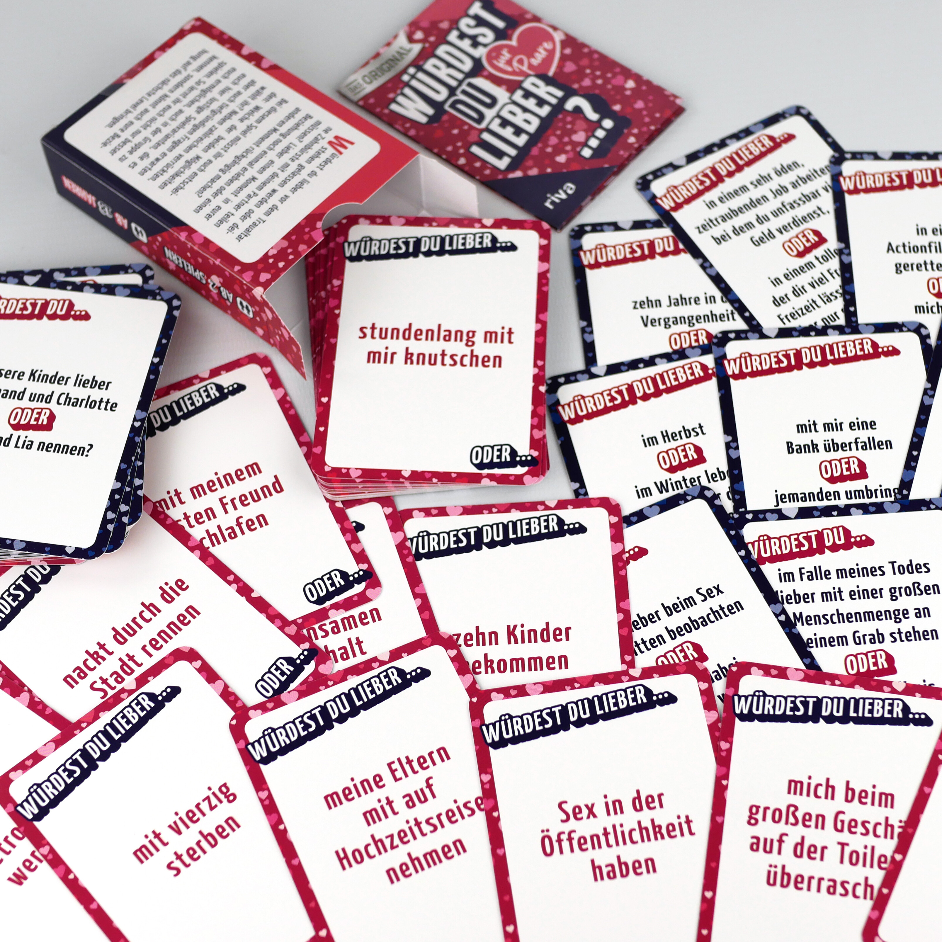 | Schlagworte | 18 • Date • Fragespiel • Geburtstag • Geschenk • Hochzeit • Jahrestag • Kartenspiel • Klassiker • Liebe • lustig • Mitbringsel • never have i ever • Party • romantisch • Spaß • Trinkspiel • Valentinstag • zu verschenken |