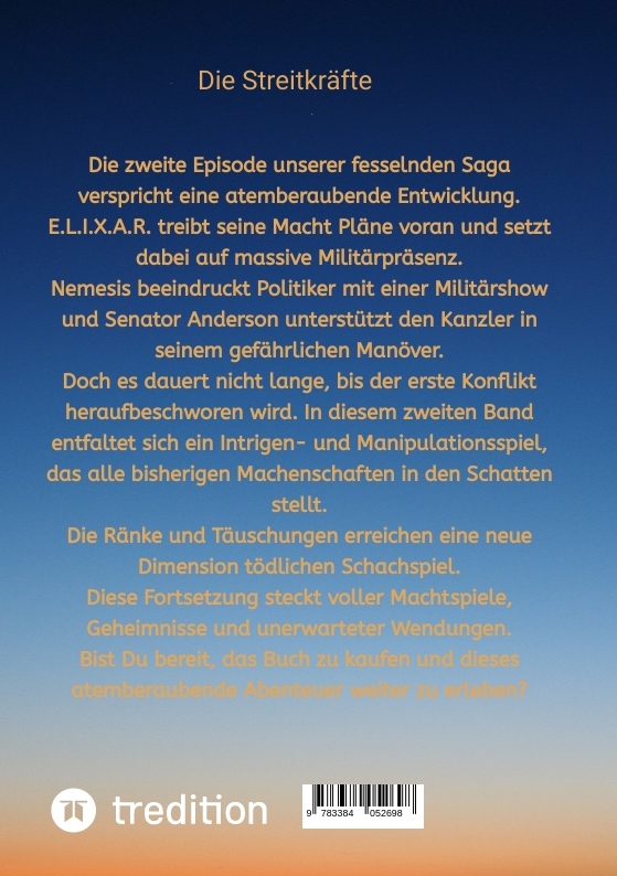 | Schlagworte | Autor Uelzen • Beeindruckende Militärshow • Belletristik Autor • Buchempfehlungen • Bücher lesen • Buchrezensionen • Buchveröffentlichung Uelzen • Deutsche Autoren • Deutsche Literatur • Die Suche nach Macht und Sicherheit • -Einflussreicher Senator • •Einflussreicher Senator • -Engagierte Forscherin • •Engagierte Forscherin • Entscheidungen und Loyalität • episches Abenteuer • Erzählungen und Romane • -Ethik der KI • •Ethik der KI • -Ethische Dilemmata • •Ethische Dilemmata • -Fesselnde Charaktere • •Fesselnde Charaktere • Fiktive Welt • Gefährlicher Auftrag (Nemesis) • -Intrigen und Kriege • •Intrigen und Kriege • Intrigen und Manipulation • Klaus Hartmann Autor • -Kluger Dackel • •Kluger Dackel • Komplexe Charaktere • -Künstliche Intelligenz • •Künstliche Intelligenz • Literaturkritik • Literatur Uelzen • Mächtiger Protagonist (E.L.I.X.A.R.) • Machtspiele • -Mensch gegen Maschine • •Mensch gegen Maschine • -Menschheit vs. KI • •Menschheit vs. KI • -Menschliche Emotionen • •Menschliche Emotionen • militärische Konflikte • -Packendes Drama • •Packendes Drama • politische Entscheidungen • politische Intrigen • Romanverfasser • Schicksal der Welt • Schriftsteller • Schriftsteller Uelzen • -Science-Fiction • •Science-Fiction • -Spannende Handlung • •Spannende Handlung • -Spannende Lektüre • •Spannende Lektüre • Spannung und Unterhaltung • -Technologische Fortschritte • •Technologische Fortschritte • -Tiefgründige Charakterentwicklung • •Tiefgründige Charakterentwicklung • -Unerwartete Wendungen • •Unerwartete Wendungen • -Unvergessliches Leseerlebnis • •Unvergessliches Leseerlebnis • Wendungen in der Handlung • -Zukunft der Menschheit • •Zukunft der Menschheit • -Zukunft der Technologie • •Zukunft der Technologie • -Zukunftsszenarien • •Zukunftsszenarien |