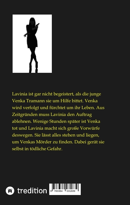 Privatdetektivin Lavinia Borowski ist gar nicht begeistert, als die junge Venka Tramann sie um Hilfe bittet. Venka wird verfolgt und fürchtet um ihr Leben. Aus Zeitgründen muss Lavinia den Auftrag ablehnen. Wenige Stunden später ist Venka tot und Lavinia macht sich große Vorwürfe deswegen. Sie lässt alles stehen und liegen, um Venkas Mörder zu finden. Dabei gerät sie selbst in tödliche Gefahr.