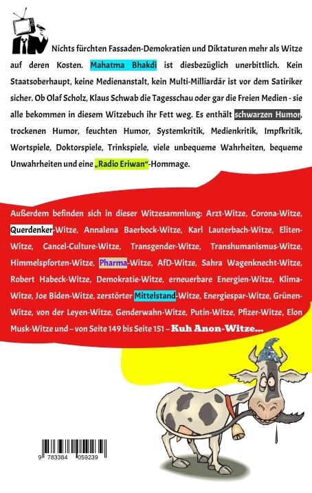 Mahatma Bhakdi ist Satiriker und stolzer Träger des SILBERNEN ALUHUTS. Nach ihm wurden bereits Straßen, Denkmäler Backwaren und ein pensionierter Virologe benannt. Mit gerade mal acht Jahren erstaunte er seine Familienmitglieder, indem er seinen Debütroman („Atmen – Notwendigkeit oder Sucht?“) veröffentlichte. Es war der sechste Teil einer Trilogie. Mit 40 brachte er dann den ersten Teil raus. Womit er auf Anhieb den EUROPÄISCHEN PREIS FÜR SCHWURBEL-LITERATUR (kurz „Schwuli“) gewann. Ein Preis, der ihm viele Türen öffnete. Sofern sie eine Klinke besaßen, wo er den Preis problemlos einhaken konnte. Sein bisher größter Erfolg war ein Gedichtband, der sich ausschließlich mit den Verkaufszahlen von Gedichtbänden beschäftigte. Er hieß „Er verkaufte sich sechs hundert Mal“. Er verkaufte sich sechs hundert Mal. Heute lebt und arbeitet Bhakdi zusammen mit einer absurd hohen Anzahl an Hirnforschern in der „Stadt der Intellektuellen“ – in Deppendorf.