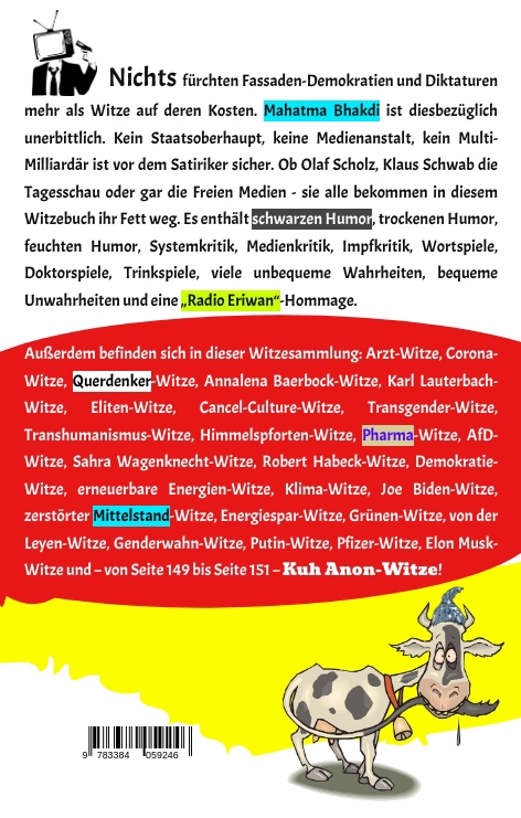 Mahatma Bhakdi ist Satiriker und stolzer Träger des SILBERNEN ALUHUTS. Nach ihm wurden bereits Straßen, Denkmäler Backwaren und ein pensionierter Virologe benannt. Mit gerade mal acht Jahren erstaunte er seine Familienmitglieder, indem er seinen Debütroman („Atmen – Notwendigkeit oder Sucht?“) veröffentlichte. Es war der sechste Teil einer Trilogie. Mit 40 brachte er dann den ersten Teil raus. Womit er auf Anhieb den EUROPÄISCHEN PREIS FÜR SCHWURBEL-LITERATUR (kurz „Schwuli“) gewann. Ein Preis, der ihm viele Türen öffnete. Sofern sie eine Klinke besaßen, wo er den Preis problemlos einhaken konnte. Sein bisher größter Erfolg war ein Gedichtband, der sich ausschließlich mit den Verkaufszahlen von Gedichtbänden beschäftigte. Er hieß „Er verkaufte sich sechs hundert Mal“. Er verkaufte sich sechs hundert Mal. Heute lebt und arbeitet Bhakdi zusammen mit einer absurd hohen Anzahl an Hirnforschern in der „Stadt der Intellektuellen“ – in Deppendorf.