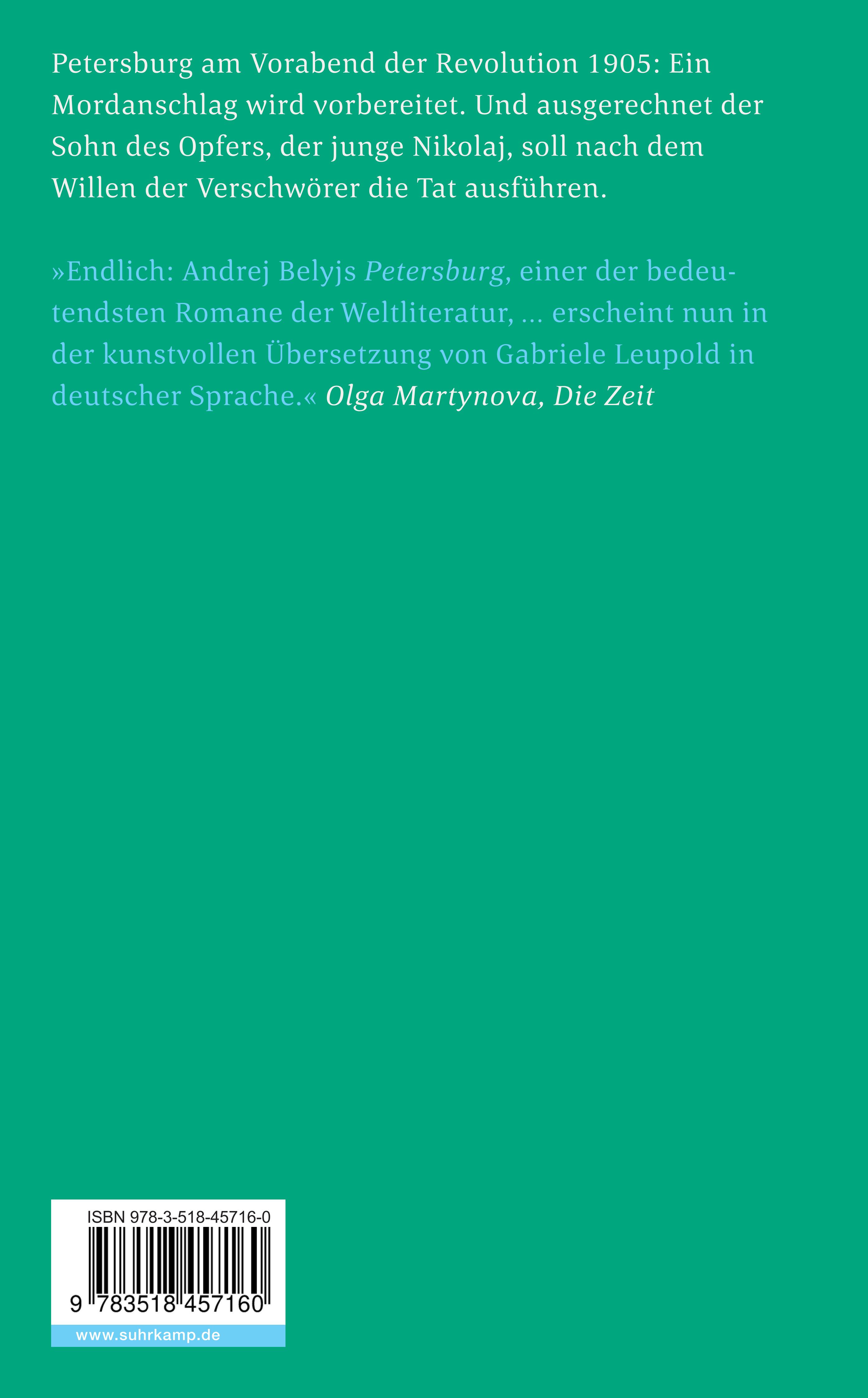 | Schlagworte | Anarchismus • Belletristische Darstellung • deutsche Thriller • Deutsche Thriller-Autoren • Geschichte 1905 • Intellektueller • Jane Scatchered-Preis 2018 • Kleist-Preis 2019 • Literarische Auszeichnung der Stadt Zürich 2023 • Literatur • Osteuropa • Page Turner • Russland • Sankt Petersburg • Sankt Petersburg; Romane/Erzähl. • Sankt Petersburg; Romane/Erzählungen • Spannung • ST 3716 • ST3716 • suhrkamp taschenbuch 3716 |