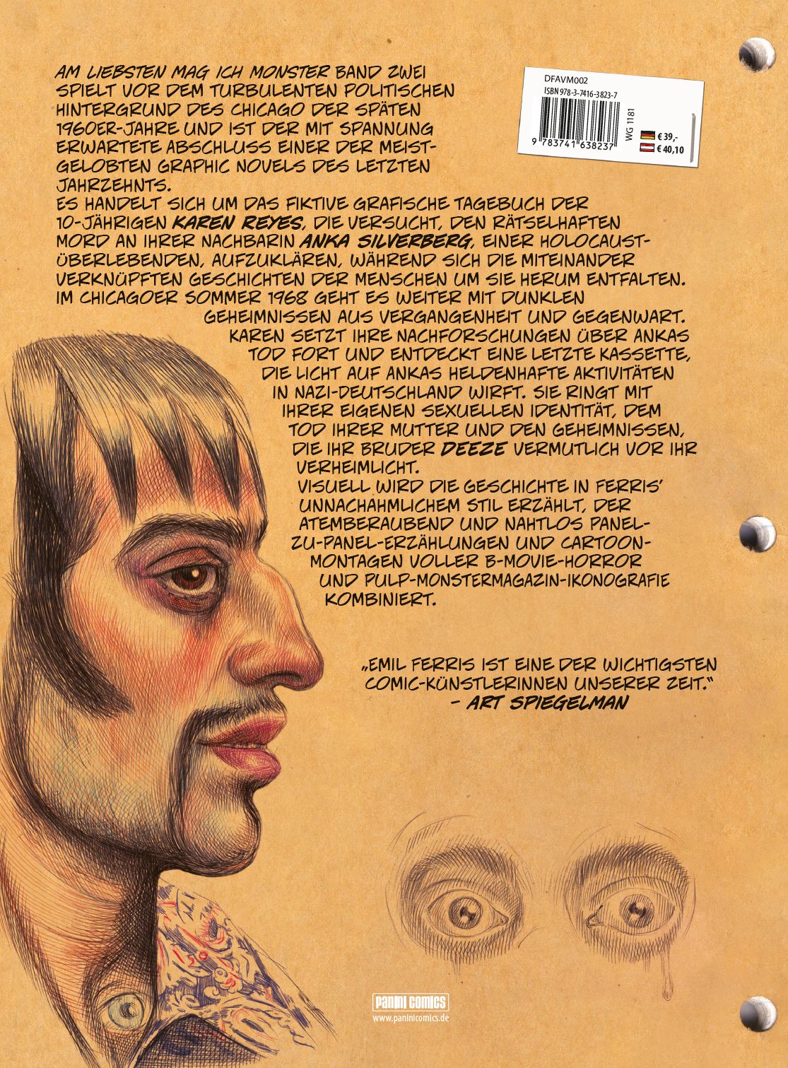 | Schlagworte | 1960er • 3. Reich • Am liebsten mag ich Monster • Anka Silverberg • Chicago • Comic • Comics • Coming of Age • Deeze • Drittes Reich • Eisner-Award • Eisner Awards • Emil Ferris • F24 • Holocaust • Horror • Karen Reyes • Monster • Mord • Nationalsozialismus • Nazi-Deutschland • Panini • Peng • Peng Preis • Pulp • Sechziger Jahre • Sexualität • Tod |