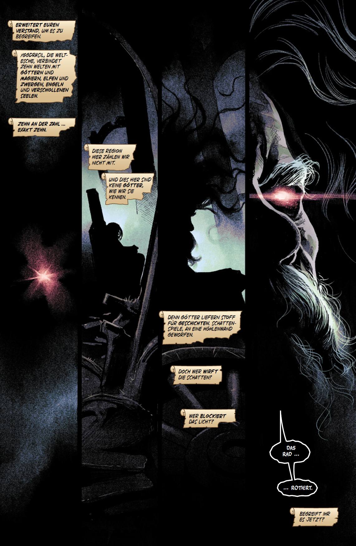 VORWORT von Thomas Witzler Thor ist der Herrscher von Asgard und Allvater der Zehn Welten. Lange hatte Odin die Geschicke des Goldenen Reiches gelenkt. Doch schon vor einiger Zeit hat er die Bürde seinem Sohn übertragen. Äonen zuvor verband er den Kern einer uralten Gottheit, auch Göttersturm genannt, mit dem verzauberten Hammer Mjolnir und hielt ihn darin gefangen. Das mächtige Artefakt wurde schließlich die furchterregende Waffe von Thor, bis das eingeschlossene Wesen rebellierte und Mjolnir korrumpierte. Als Gott der Hämmer zog es eine Spur des Todes und der Verwüstung hinter sich her. Um den Amoklauf zu beenden, opferte sich Odin und projizierte den letzten Rest seiner Kraft auf Thor. Mithilfe der Regenbogenbrücke teleportierte der Donnerer den Gott der Hämmer wutentbrannt nach Nidavellir, wo Mjolnir einst von den Zwergen Eitri, Brokk und Buri geschaffen worden war. Dort erhitzte er die Schmiede mit der Allmacht des Vaters auf die Temperatur von einer Milliarde Sonnen. Die Hitze befreite den Hammer zwar von Odins Zaubern und der korrupten Essenz der Mutter des Sturms, zerbarst ihn jedoch in lauter kleine Einzelteile. Vier Monate musste sich Thor anschließend von der Tortur im Odinschlaf erholen. Unterdessen beauftragte seine Schwester Angela die Engel von Heven, die Uru-Stücke einzusammeln und Mjolnir wieder zusammenzufügen. In der Folge waren auf dem scheinbar machtlosen Hammer viele goldfarbene Risse zu sehen. Da Odin in den Hallen von Walhall, die aufgrund eines Komplotts von Dr. Doom verlassen waren, keine Ruhe fand, wählte sein Geist kurzfristig Mjolnir als Zufluchtsort. Derweil wurde Thor im Zuge eines Kampfes mit dem Hulk selbst in ein Gamma-Monster verwandelt. In der Absicht, ihm zu helfen, versuchte Sif, die Wächterin der Regenbogenbrücke, Odinson nach Asgard zu holen. Als er sich dagegen wehrte, ging auch der Bifröst zu Bruch. Inzwischen ist Odin samt seinem Vater Bor und den im Kampf gefallenen Asen in Walhall eingezogen. Seine Ära ist Geschichte. Das Zeitalter Thors beginnt. Der König ist tot. Lang lebe der König.