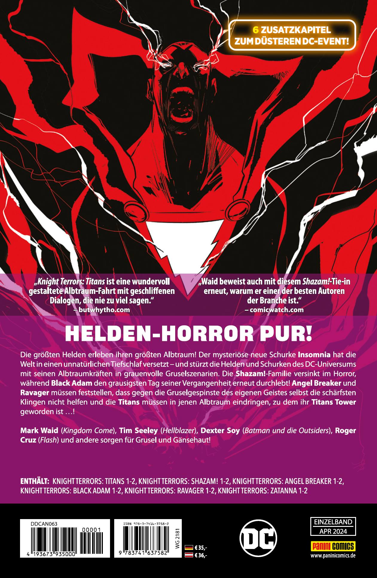 | Schlagworte | Angel Breaker • Black Adam • Comic • Comics • DC • DC-Held • DC-Helden • DC Superheld • DC-Superheld • Einzelband • F24 • Insomnia • Knight Terrors • Panini • Paninicomics • Panini Comics • Ravager • Shazam • Shazam! • Superheld • Superhelden • titans |