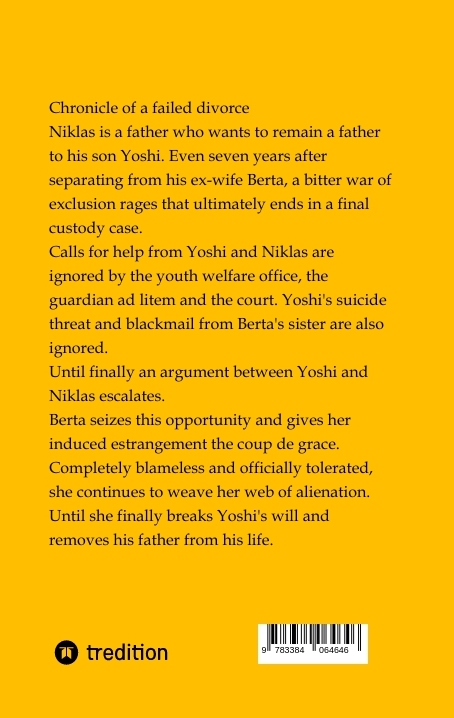 A factual report that deals with the topic of Parental Alienation Syndrome (PAS) after a divorce. Presented from the perspective of a father who tried for seven years to maintain contact with his child and dramatically describes how there are hardly any socio-pedagogical and legal options to counteract this. It clearly shows how those involved in German family law play for time. Children's rights and intact social ties are accepted as collateral damage.