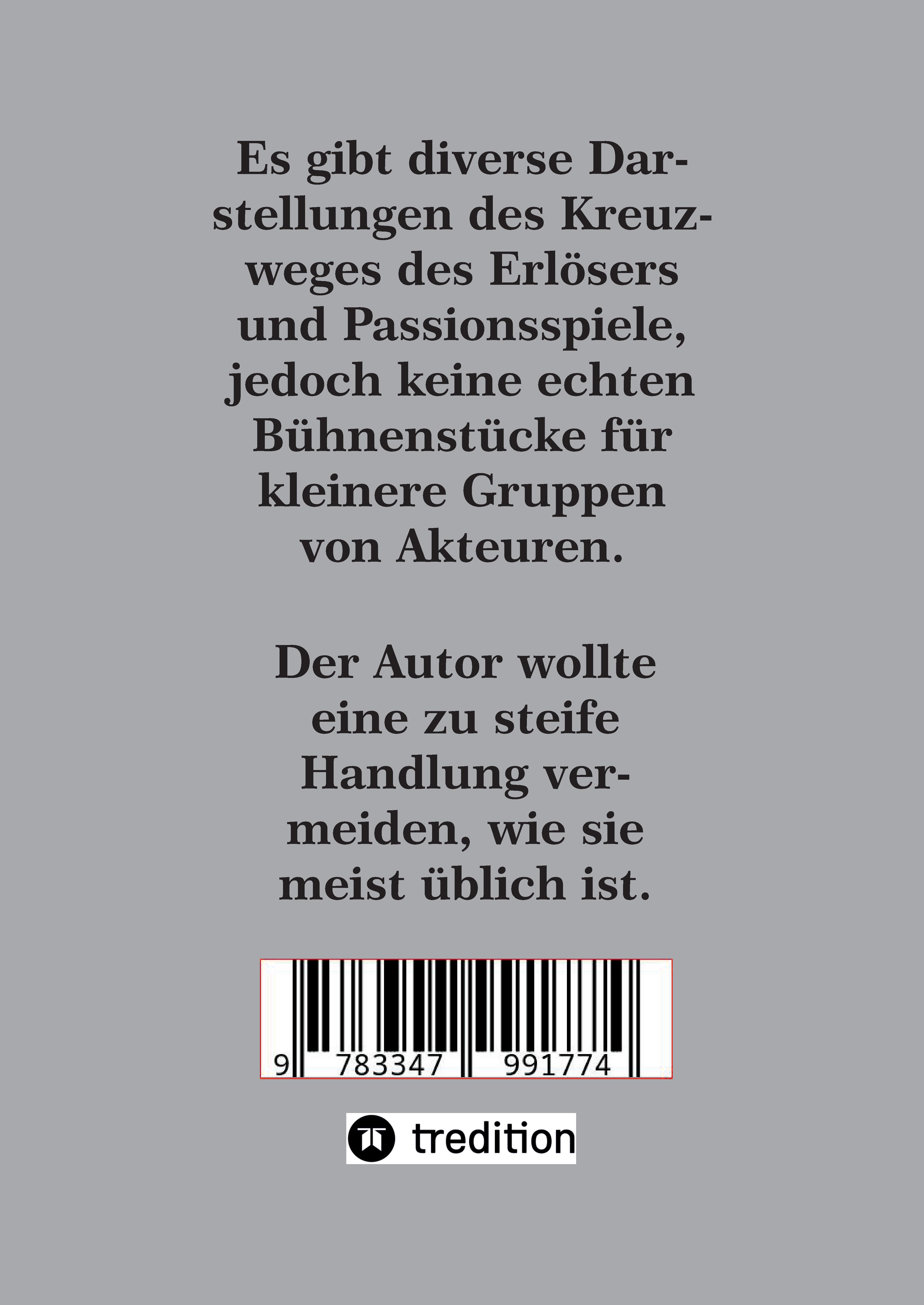Die üblichen Darstellungen von der Geburt Jesu sind zu sehr vom Evangelium nach Lukas geprägt, welches zu locker mit den historischen Tatsachen umgeht. Anhand eines Bühnenstückes versucht der Autor, eine realistischere Sichtweise anzubieten.Vom Leiden Jesu gibt es diverse Darstellungen, die entweder sehr feierlich oder zu steif ausfallen. Das Buch enthält dazu neun ausführliche Szenen im vitaleren Stil für eher kleinere Theatergruppen.