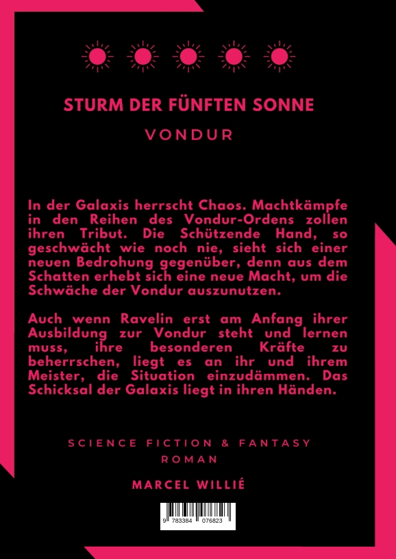 In der Galaxis herrscht Chaos. Machtkämpfe in den Reihen des Vondur-Ordens zollen ihren Tribut. Die Schützende Hand, so geschwächt wie noch nie, sieht sich einer neuen Bedrohung gegenüber, denn aus dem Schatten erhebt sich eine neue Macht, um die Schwäche der Vondur auszunutzen.Auch wenn Ravelin erst am Anfang ihrer Ausbildung zur Vondur steht und lernen muss, ihre besonderen Kräfte zu beherrschen, liegt es an ihr und ihrem Meister, die Situation einzudämmen. Das Schicksal der Galaxis liegt in ihren Händen.