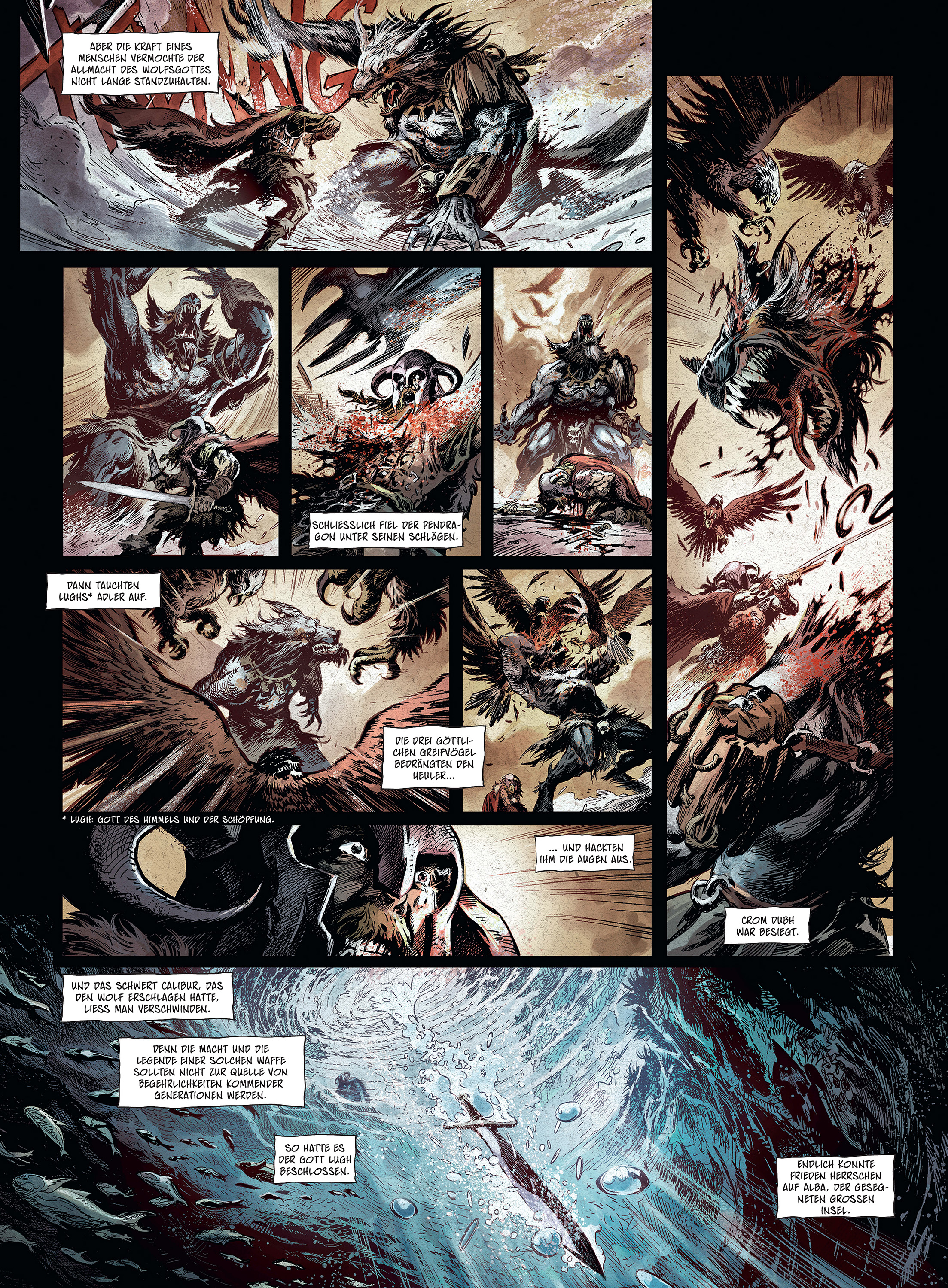 Die Götter scheinen das Land von Alba verlassen zu haben, nachdem die Besatzung der Römer ihr Ende fand. Unaufhörliche Kriege zwischen den sieben Königreichen zermürben die Menschen, und ihre alten Riten drohen, der Vergessenheit anheim zu fallen. Doch der Zauberer Merlin verfolgt einen Plan, um die Harmonie im Land wiederherzustellen: Ein starker Anführer und unbezwingbarer Kämpfer soll die streitenden Reiche einen und den Frieden wiederherstellen. Merlins Wahl fällt auf den fähigen, aber ambitionslosen Kriegshäuptling Artus Pendragon. Wird er sich dieser Aufgabe und des legendären Schwerts Calibur als würdig erweisen?Jérôme Le Gris und Benoît Dellac, die mit »Nottingham« dem Mythos von Robin Hood neues Leben einhauchten und mit »Hawkmoon« ihr Händchen für opulente Dark Fantasy bewiesen, greifen in »Pendragon« die Artussage auf und setzen sie in einen phantastisch-historischen Kontext. Ihr überragendes Artwork tut das Übrige, um diese Comic-Tetralogie zu einem Meilenstein des Genres zu machen.
