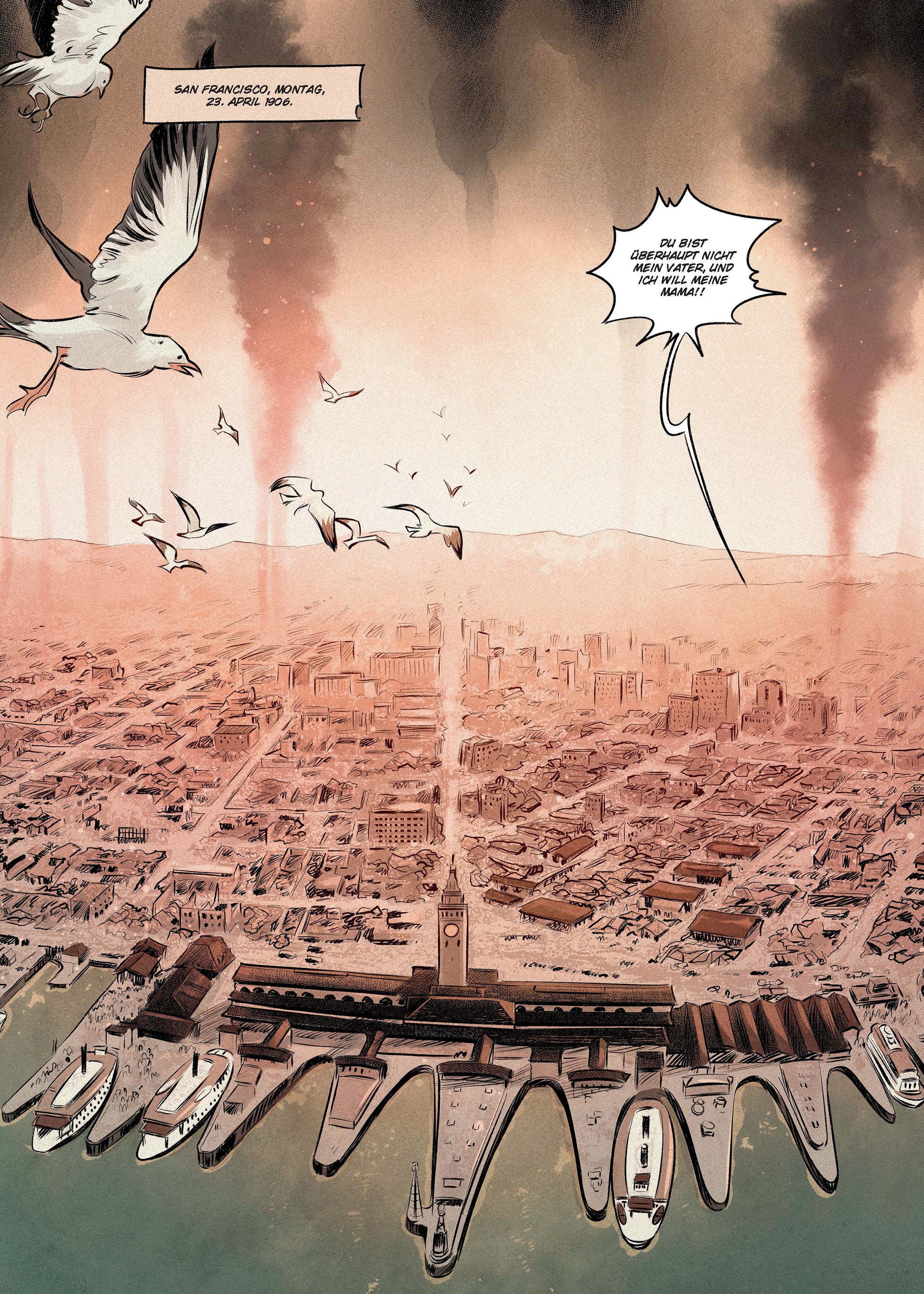 Im Jahr 1906 kostete das katastrophale Erdbeben an der Westküste der USA zahllose Menschen das Leben. Die kleine Jenny verlor ihre Mutter unter den Trümmern und ist nun allein mit ihrem Stiefvater in den Ruinen der Stadt. Der ist von der Situation jedoch völlig überfordert und beschließt, Jenny zu seinen Eltern nach Chicago zu senden - und zwar per Post! Ein Schlupfloch in den Regularien des US Postal Service macht es möglich. So landet das Mädchen in der Obhut von Enyeto, einem hünenhaften Ureinwohner, der es sicher an sein Ziel bringen soll. Das ist der Beginn einer langen Reise zu Pferd und auf der Schiene, eines Trecks durch die amerikanische Wildnis und einer unwahrscheinlichen Freundschaft.Nachdem sie in »Fukushima« die Helden der Katastrophe von 2011 porträtierten, tauchen Bertrand Galic und Roger Vidal in ein turbulentes Amerika im Umbruch zwischen Wildem Westen und Moderne ein und erzählen mit »Das Mädchen und der Postreiter« eine bewegende Abenteuergeschichte vor realhistorischem Hintergrund.
