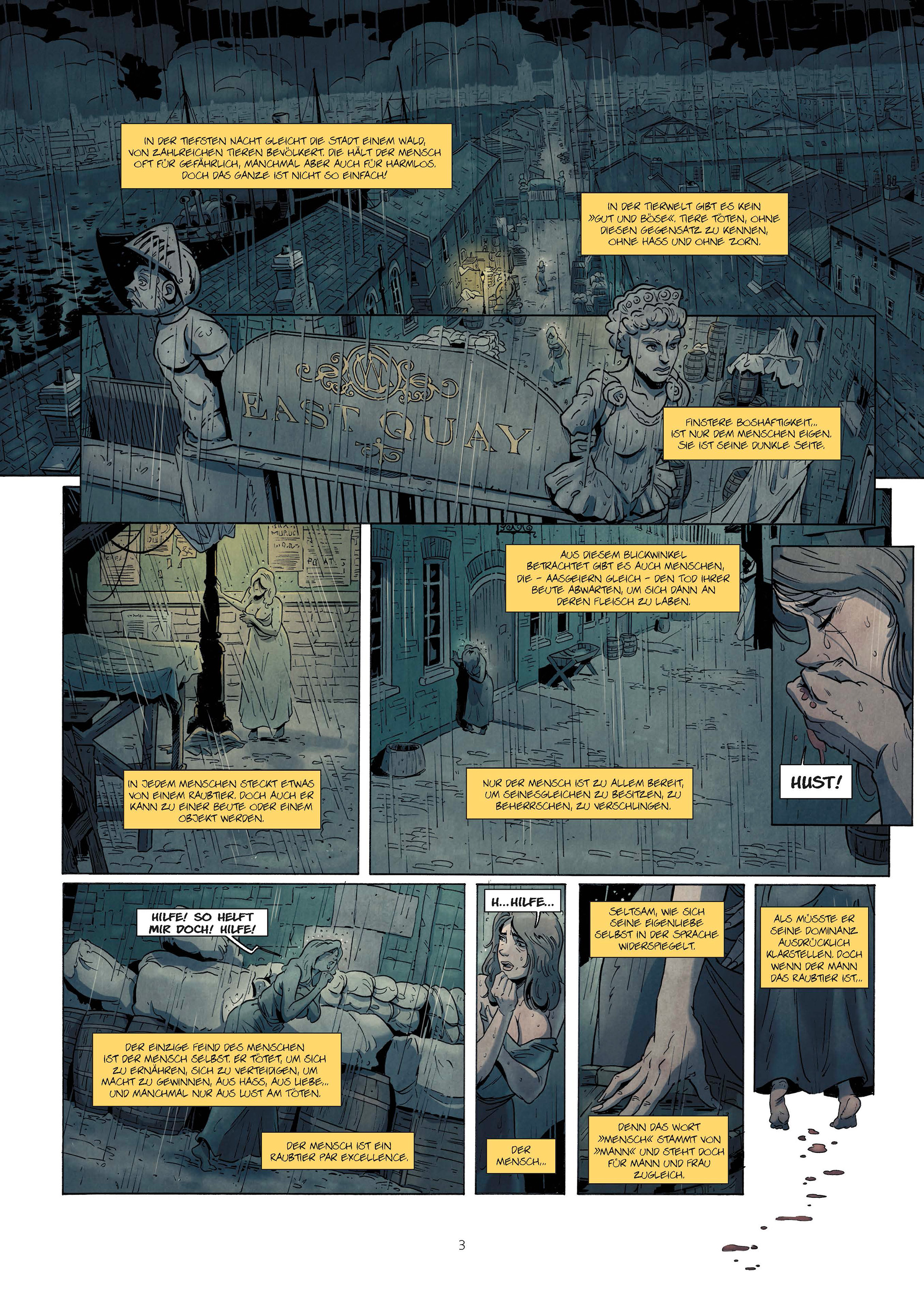 Commissioner Barnes und sein junger Gehilfe treiben ihre Suche nach dem grausamen Killer in Whitechapel voran. Als sie eine Verbindung zwischen der Maison Fleury und einem zwielichtigen Theater, das Monster auf der Bühne präsentiert, entdecken, wähnt Barnes den Durchbruch zum Greifen nahe. Aber die Spur endet bei einer okkulten Sekte, die scheinbar mystische Opferriten vollzieht. Wer steckt hinter dieser mächtigen Organisation in den Schatten?