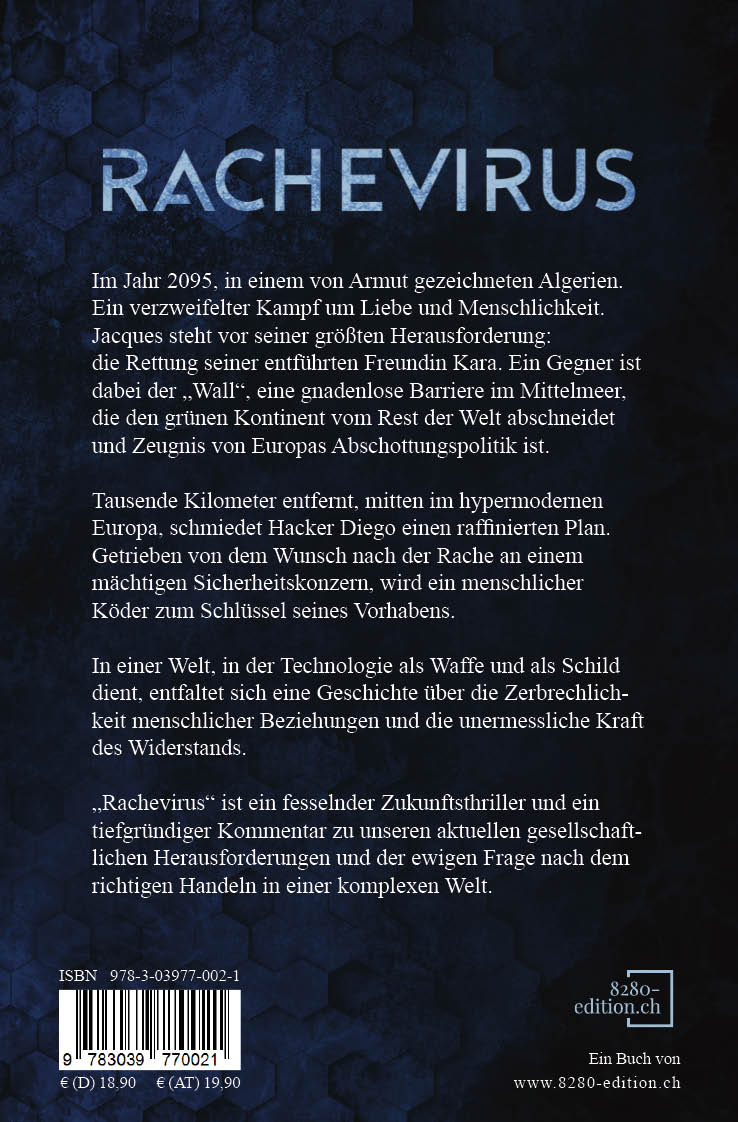 Währenddessen sieht sich Europa einem entfesselten Hyperkapitalismus gegenüber, angetrieben von faszinierender Hightech und korrupten Machthabern. Im Herzen dieser rücksichtslosen Gesellschaft plant der Hacker Diego einen subversiven Vergeltungsakt gegen PeaSecur, den dominierenden Sicherheitskonzern. Dessen selbstverliebter CEO, Karl Wagner, sowie sein hinterlistiger Anwalt waren die Architekten von Diegos Zerstörung. Nur noch ein kleines, fehlendes Puzzleteil hält ihn von seiner Rache ab: Ein menschlicher Köder, um seinen gnadenlosen Rachevirus auf Europa loszulassen.