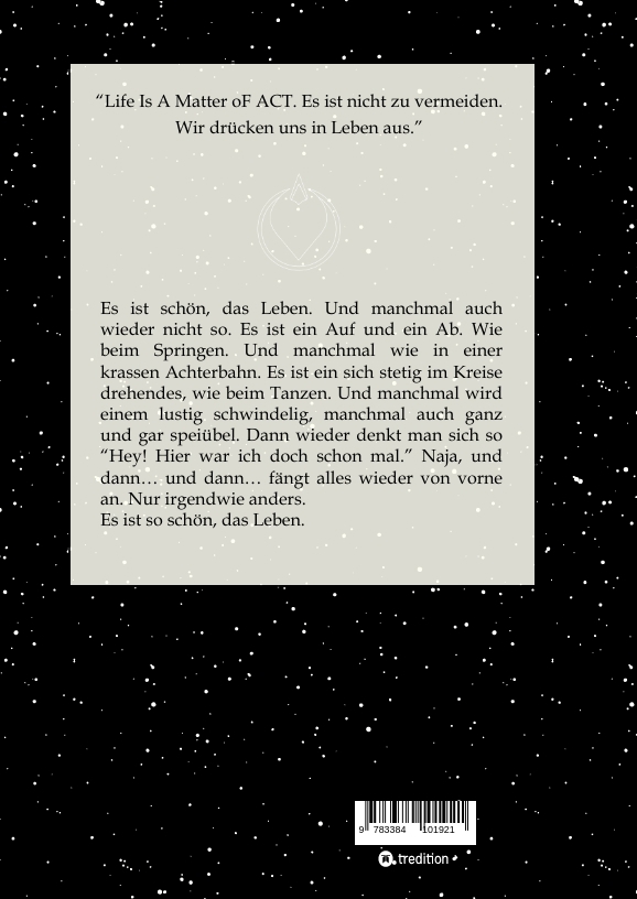 Mia Maestra - das ist der Teil von mir, der stets versucht ist, dieses Leben zu meistern. Mal gelingt es mir gut, mal fühlt es sich gar nicht danach an. Aber eines bleibe ich stets: Meine eigene Meisterin. Ich lerne, ich entdecke, ich forsche, ich erkunde. Was bedeutet dieses Mensch-sein? Was hat dieses Leben für mich? Im Taumel von Empfindungen und Gedanken, von Worten und Bildern, da finde ich Schätze. Mal im Tiefdunkeln kriechend, mal auf Wolken tanzend. Überall Schätze! Es ist die stetige Bewegung in einem Raum, der ist so laut voller Stille, dort wohnen die Abenteuer und die erholsame Ruhe, die meinen Geist beschwingen wie besänftigen. Life is a matter oF ACT. Es ist nicht zu vermeiden. Ich drücke mich in Leben aus. Her mit dem schönen Leben!