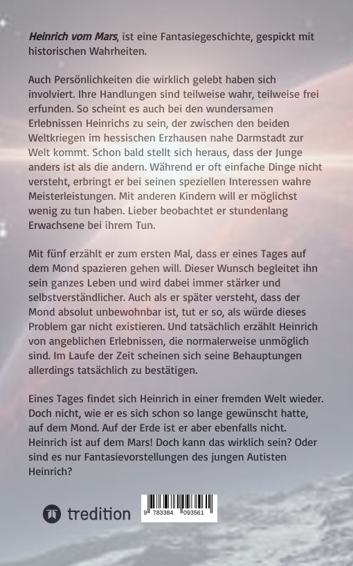 Günter Förster wurde 1957 in Nauheim im Kreis Groß-Gerau geboren. Schon immer war es sein Wunsch, eines Tages ein Buch zu schreiben. Weil ihm Beruf Familie und Hobbys genug Zeit ließen, konnte dieser Wunsch vor einiger Zeit Realität werden. Er wählte damals eines seiner seit Kindheitstagen beliebten Themen: Zeit und Raum. Das Schreiben und Veröffentlichen hatte viel Freude bereitet, aber ein weiteres Projekt war nicht geplant. Das änderte sich, als ihm immer mehr bewusst wurde, wie sehr Asperger-Autisten immer öfter im Gespräch sind. Und wieviel Wissen, aber auch Unwissen, darüber verbreitet wird. Sein eigener, längst erwachsener Sohn, ist Asperger-Autist. So entschloss er sich kurzerhand, auch über dieses Thema ein Büchlein zu schreiben. Sein drittes und vielleicht letztes Buch ist eine Mischung der beiden oben genannten Interessengebiete. Im Mittelpunkt steht Heinrich, ein besonderer Mensch mit besonderen Fähigkeiten und ganz besonderen Erlebnissen.