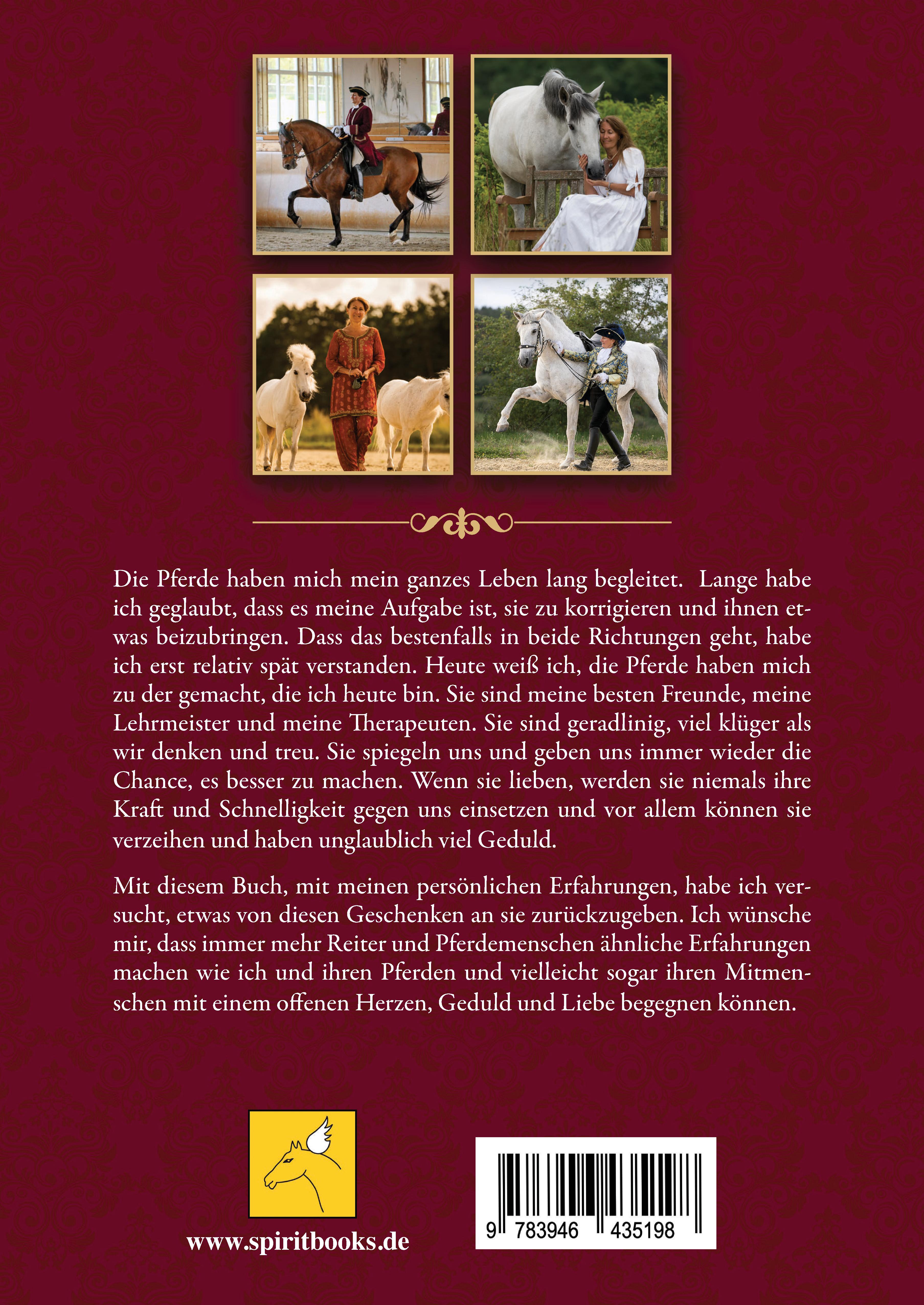 Ich reite seit meinem 13.Lebensjahr und habe meine Ausbildung in der Reitschule Martin Hölzl in Stuttgart-Möhringen begonnen. Mit meinem 1.eigenen Pferd, das ich bereits mit 14 bekam, nahm ich an Fuchsjagden und Vereinsauftritten (Quadrillereiten und Springen) teil. Durch meinen Reitlehrer, Herbert Näher, ritt ich in den 70er und 80er Jahren auf ersten öffentlichen Turnieren Springen bis Klasse S und Vielseitigkeit bis Klasse M international. In den 80er Jahren war ich über 1 Jahr als Schülerin und Kundin mit meinem Pferd Elegant auf der Anlage von Udo Lange bei Pforzheim und begann an Dressurturnieren bis Klasse S teilzunehmen. Parallel dazu begann ich im Reitinstitut Egon v. Neindorff in Karlsruhe eine völlig neue Art der Reiterei kennenzulernen, die meine Sichtweise im Umgang mit Pferden bis heute stark geprägt und verändert hat. Vier meiner Dressurpferde waren damals mehrere Monate im Reitinstitut eingestellt. Ich verabschiedete mich vom Turniersport und hatte damals vor, mit Herrn v. Neindorff eine kleine private Reitschule zu gründen, was mich am 29.7.2003 zum Kauf des landwirtschaftlichen Anwesens in Heimsheim inspiriert hat. Mit Ulrike Dietmann rief ich 2013 das Horse and Spirit Festival ins Leben, das bis 2021 neun Mal im Barockreitzentrum stattfand und einzigartig in der Pferdeszene war. Es versammelte innovative Trainer und Pferdemenschen, mit der Vision, eine bessere Welt für Pferde und Menschen zu schaffen und bot dazu Workshops, Meditationen und Vorträge an.