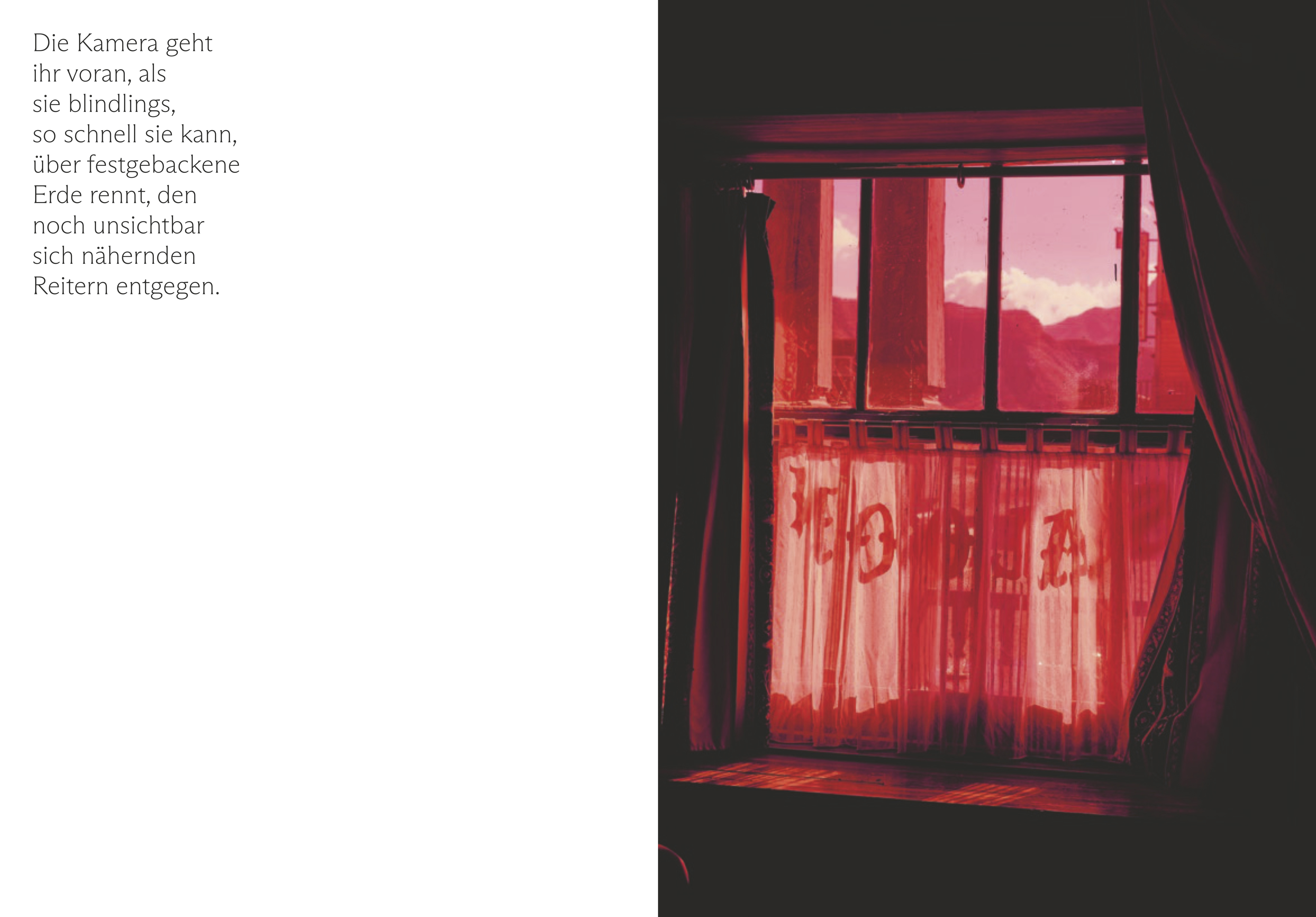 Die Ruinen von Exodus (The Ruins of Exodus) contains photographic works by Disqué that capture visual impressions of the scenery while using techniques of collage to convey the dizzying effects of interference between the films and the actual history of the Tabernas desert. Ehrlich's writings probe the connections between the film productions realized in the desert and the real landscape and trace the manifold projections back to the origins of their imagery.