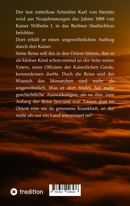 | Schlagworte | Ägypten • Berlin • Deutsche Kaiser • Deutsches Reich • Dreikaiserjahr • England • Erotik • Erster Weltkrieg • Geschichte • H1N1 • Heiligendamm • Historische Gegebenheiten • Krankheit • Kriegsführung • Krimi • Lebensbeichte • Lord Kitchener • Mord • Nil • Orient Express • Pandemie • Preußen • Reise • Spannung • Stadtschloss • Tod • Türkei • Weltmächte • Witz |