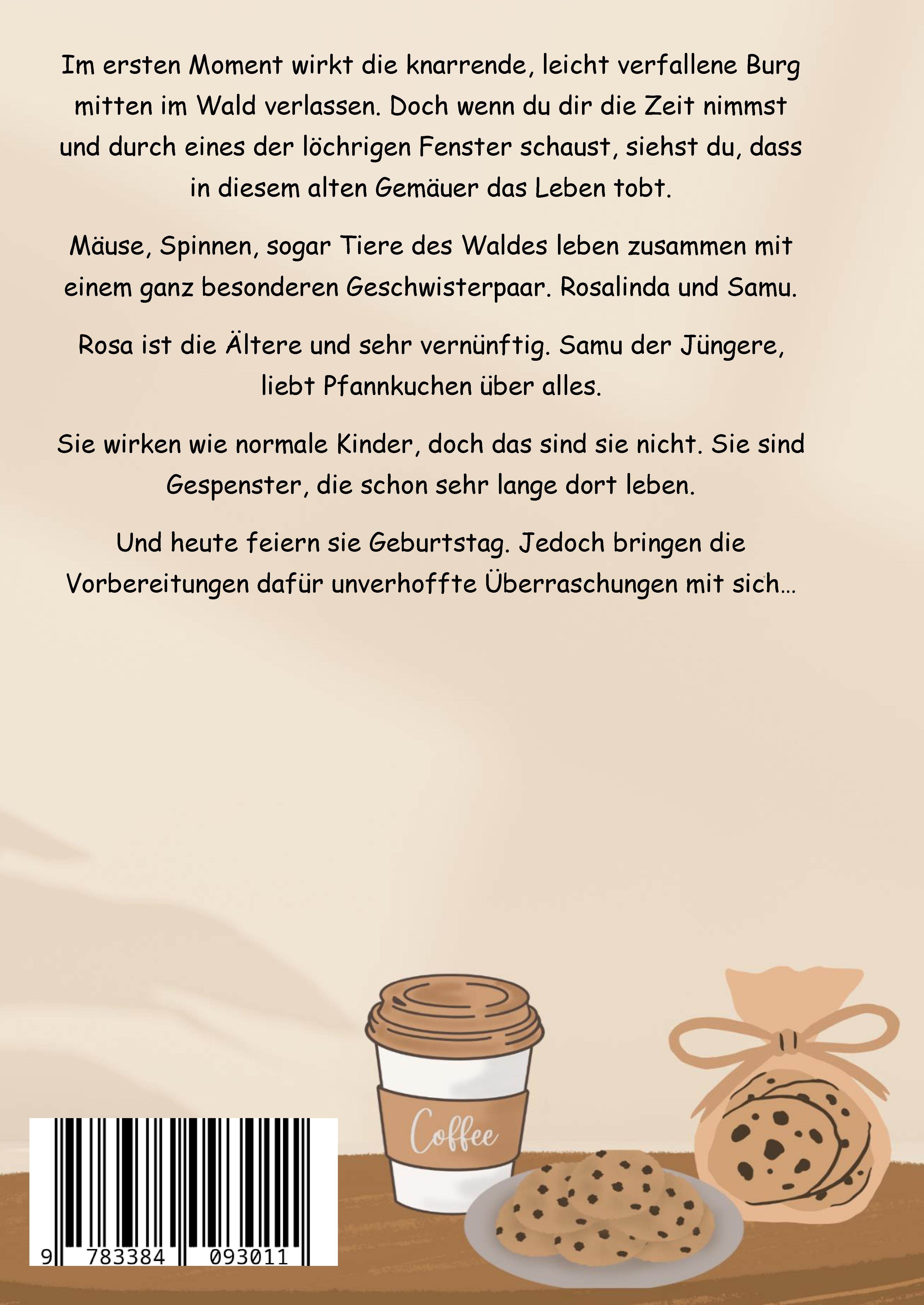 | Schlagworte | Angst • Antwort • Augen • Bett • Blick • Burg • Danke • Dorf • Eier • Eierkuchen • Eindringling • Essen • Familie • Fee • Feier • Fest • finden • Fledermaus • Fragen • Freunde • Freundschaft • Geburtstag • Gedanken • Geist • Geschwister • Gesicht • Gespenster • Hirsch • Jahren • Käfer • Kekse • Kinder • Mäuse • Moment • Nacht • Paar • Schloß • schokokekse • Schokolade • Spinne • Tiere • Tisch • Vogel • Wald • Zeit • Zimmer |
