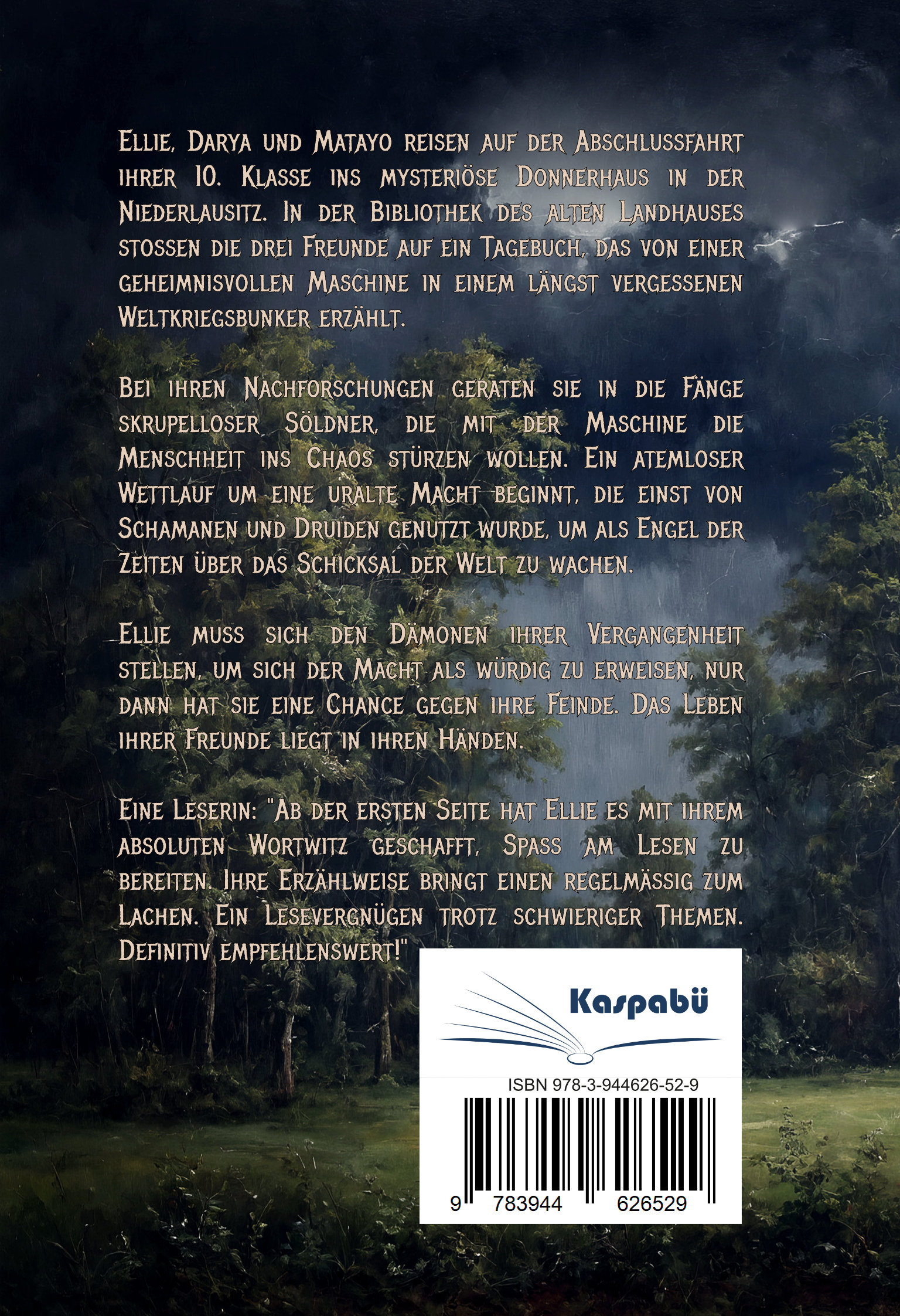 Ellie, Darya und Matayo reisen auf der Abschlussfahrt ihrer 10. Klasse ins mysteriöse Donnerhaus in der Niederlausitz. In der Bibliothek des alten Landhauses stoßen die drei Freunde auf ein Tagebuch, das von einer geheimnisvollen Maschine in einem längst vergessenen Weltkriegsbunker erzählt.