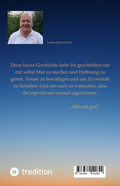 Diese kurze Geschichte habe ich geschrieben um mir selbst Mut zu machen und Hoffnung zu geben. Trauer zu bewältigen und um Zuversicht zu behalten. Und um euch zu wünschen, dass ihr irgendwann einmal sagen könnt: "Alles ist gut!"
