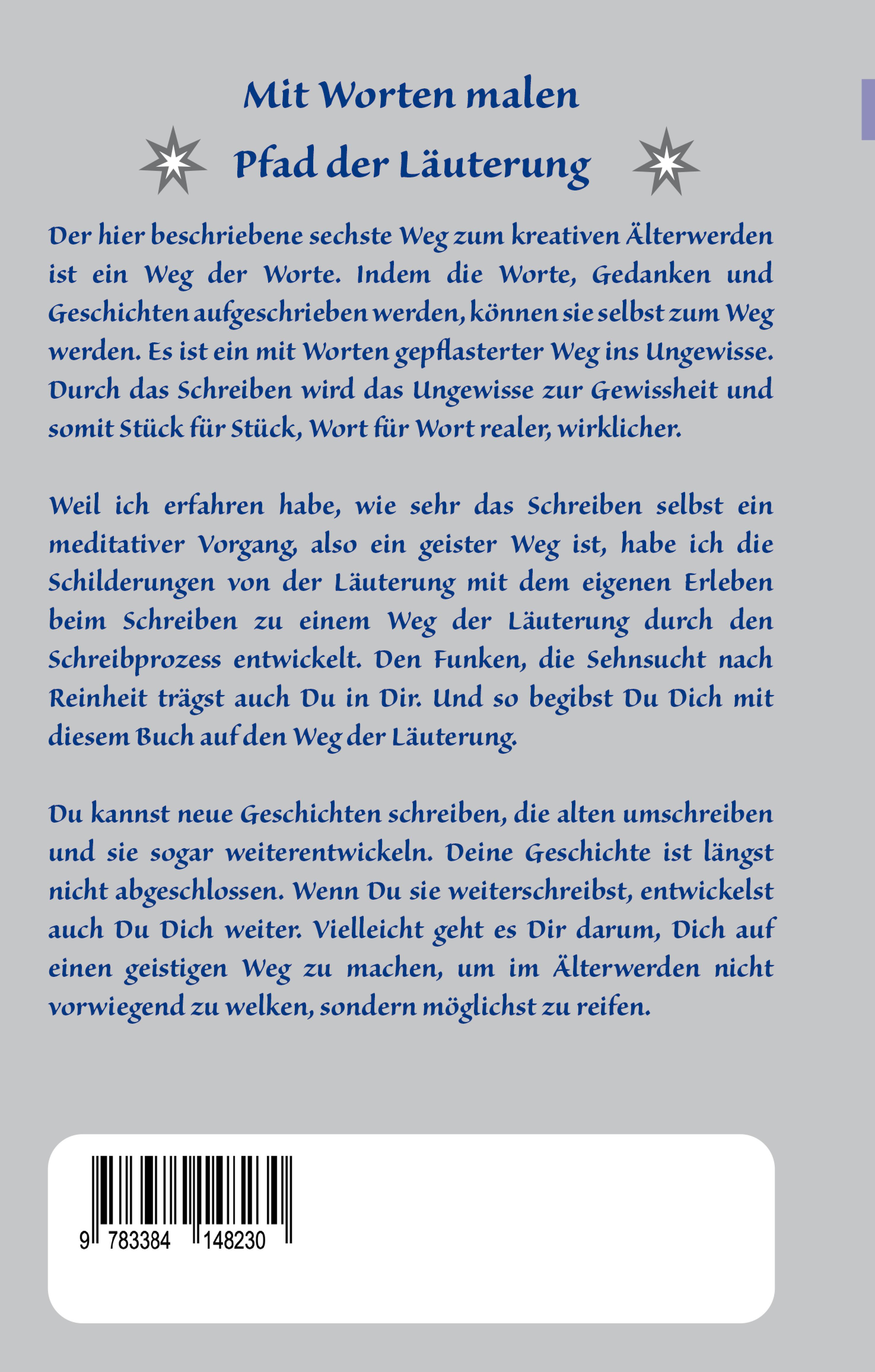 | Schlagworte | Autor deines Lebens werden • Brief als Gebet • deine geschichte • dein Morgenstern • die Reinheit der Leere • Dunkle Nacht der Seele • Erinnerungen • Erinnerungsschatz • geistige Wachstumskrise • Lebensrückschau • Lebensweisheit • Liebe zum Schreiben • mit Worten malen • sage und schreibe es • Schreiben als Klärungsprozess • Selbstgestaltung • Vergegenwärtigen • von der Seele schreiben • was dir auf der Seele brennt • Weg der Läuterung • Wettlauf mit der Zeit • Wille zum Wort |