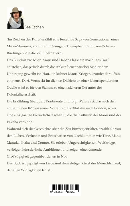 Im Zeichen des Koru erzählt eine epische Geschichte, die sich über mehrere Generationen erstreckt und das Erbe der Maori mit Themen wie Liebe, Verlust und der unerschütterlichen Kraft des menschlichen Geistes verbindet. Vor der beeindruckenden Kulisse von Aotearoa (Neuseeland) erzählt die Saga von den Prüfungen und Siegen eines Maori-Stammes, angefangen bei Amiri, einem mutigen Krieger, und Hahana, deren Vereinigung die Einheit ihrer Stämme symbolisiert. Doch ihr Vermächtnis wird durch die Invasion europäischer Siedler, die Amiris Dorf ins Chaos stürzen, in eine Tragödie verwandelt.Hau, Amiris bester Krieger, beschützt Manaia, die Tochter von Amiri und Hahana, und bringt sie zusammen mit ihrer Ziehmutter an einen Ort nahe einer Quelle, wo sie trotz aller Widrigkeiten einen Neuanfang wagen.Die Geschichte führt durch die Zeit und konzentriert sich auf Waiora, den Sohn von Manaia, dessen Wissensdurst eine Reise auslöst, um die abgetrennten heiligen Häupter seiner Vorfahren aus England zurückzuholen. London wird zum Schauplatz von Waioras Suche, bei der sein Schicksal mit dem von Koa, einer helfenden Hand, und Reginald, einem unerwarteten Verbündeten, verwoben ist. Gemeinsam überwinden sie kulturelle Barrieren, stellen die Ehre ihrer Vorfahren wieder her und schließen auf der Suche nach Versöhnung dauerhafte Freundschaften.Die Handlung verlagert sich dann zu Hinewai, eine von Waioras Töchtern, und Tane, deren Liebesgeschichte sich vor dem Hintergrund der Gräueltaten der Pakeha (europäische Siedler) während des Goldrausches entfaltet. Die Flucht der Familie nach London führt zur Gründung einer Kunsthandlung in der Proolmise Straße 55, die indigene Kunst aus Neuseeland fördert und eine neue Generation in einem fremden Land unterstützt.Das nächste Kapitel folgt Manu Manuka, dem einzigen Erben der wertvollen Kunsthandlung in London, dessen Leben eine turbulente Wendung nimmt, als er fälschlicherweise des Mordes beschuldigt wird. Während Manu mit seiner Inhaftierung zurechtkommen muss, entfaltet sich ein Netz aus Betrug und Rache, das von einem rachsüchtigen Schreiner gesponnen wird, der einen tiefen Groll gegen die Maori hegt.Die Familie wächst durch die Herausforderungen des Ersten Weltkriegs und wird Zeuge von Ihakas künstlerischem Ausdruck inmitten des Konflikts, Ruas tragischem Opfer und Pares hingebungsvoller Krankenpflege.Inmitten des Kriegslärms wird Ihakas Kunst zu einer Erzählung der Wahrheit, die das Glück der um Rachel und Elias erweiterten Familie beflügelt. Doch die Wirren des Zweiten Weltkriegs bewegen sie dazu, jüdische Kinder aus den Kindertransporten bei sich aufzunehmen, darunter auch Eva, als sie ihre Villa, die in eine Herberge umgewandelt wurde, der Armee überlassen müssen.Entschlossen, diese vertriebenen Seelen zu schützen, bringen Ihaka und seine Familie zweiunddreißig jüdische Kinder in das Dorf Hau nach Neuseeland, wo sie im Schutz des Busches und der Gastfreundschaft der Dorfgemeinschaft Heilung finden.Während die Familie wieder zusammenfindet und sich den Prüfungen des Lebens stellt, blüht die Liebe zwischen Eva und Elias, die in der bittersüßen Erkenntnis gipfelt, dass sie unfruchtbar ist und Elias an einer seltenen Krankheit frühzeitig stirbt. Jahrzehnte später freut sich Eva auf die Ankunft ihres Urenkels und schätzt ihre Verbindung zum Dorf Hau und dessen Erbe der Hoffnung und des Widerstands.Während der neue Stammbaum der Familie wächst, decken Connor und Veronica, die jüngste Generation, eine globale Verschwörung auf und enthüllen den beständigen Geist von Gerechtigkeit und Integrität, der in der Vorfreude auf ein neues Leben inmitten des Echos der Geschichte gipfelt.