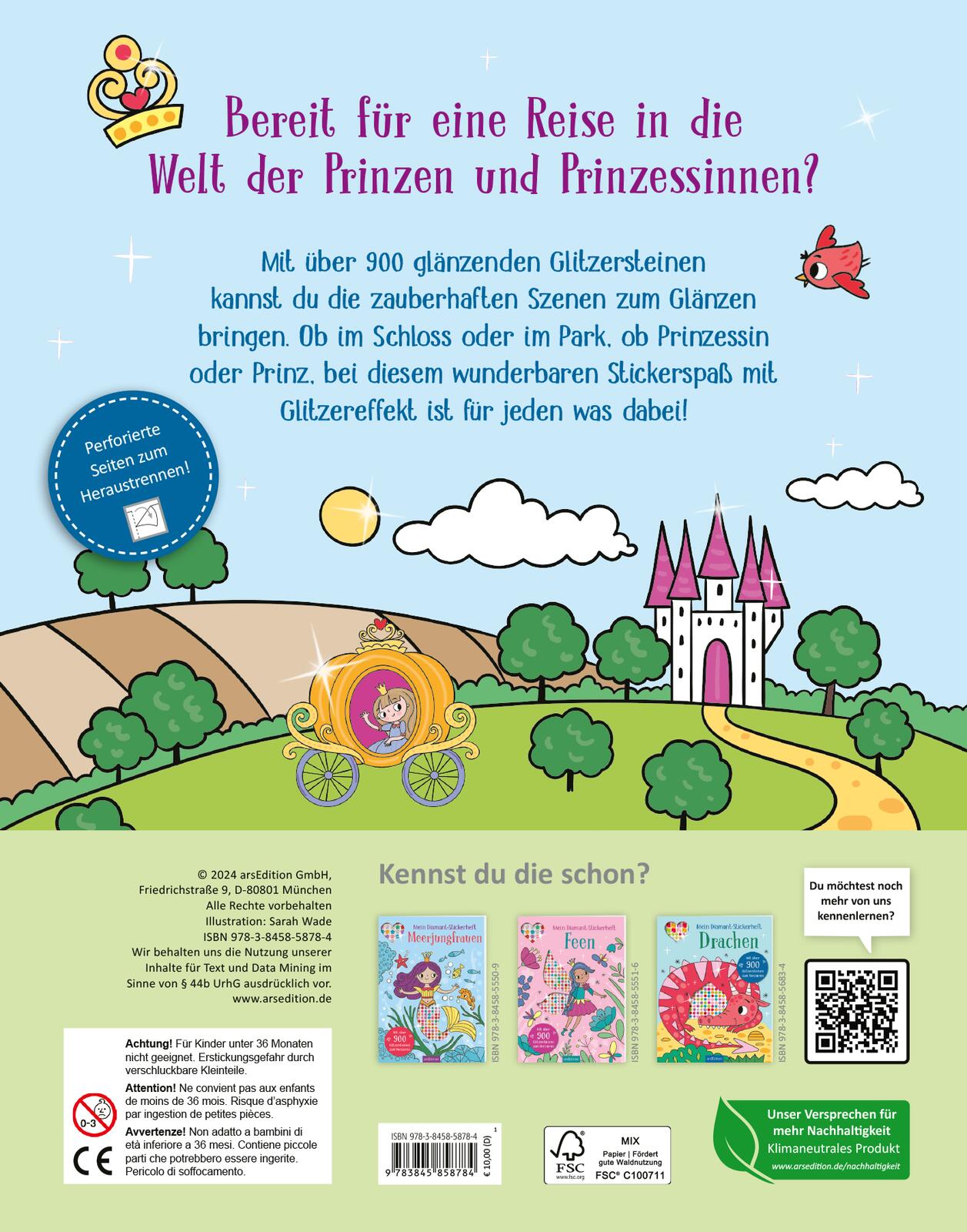 Mit über 900 glänzenden Glitzersteinen kannst du die zauberhaften Szenen zum Glänzen bringen. Ob Prinzessin oder Prinz, ob Pferd oder Blume, bei diesem wunderbaren Stickerspaß mit Glitzereffekt ist für jeden was dabei!