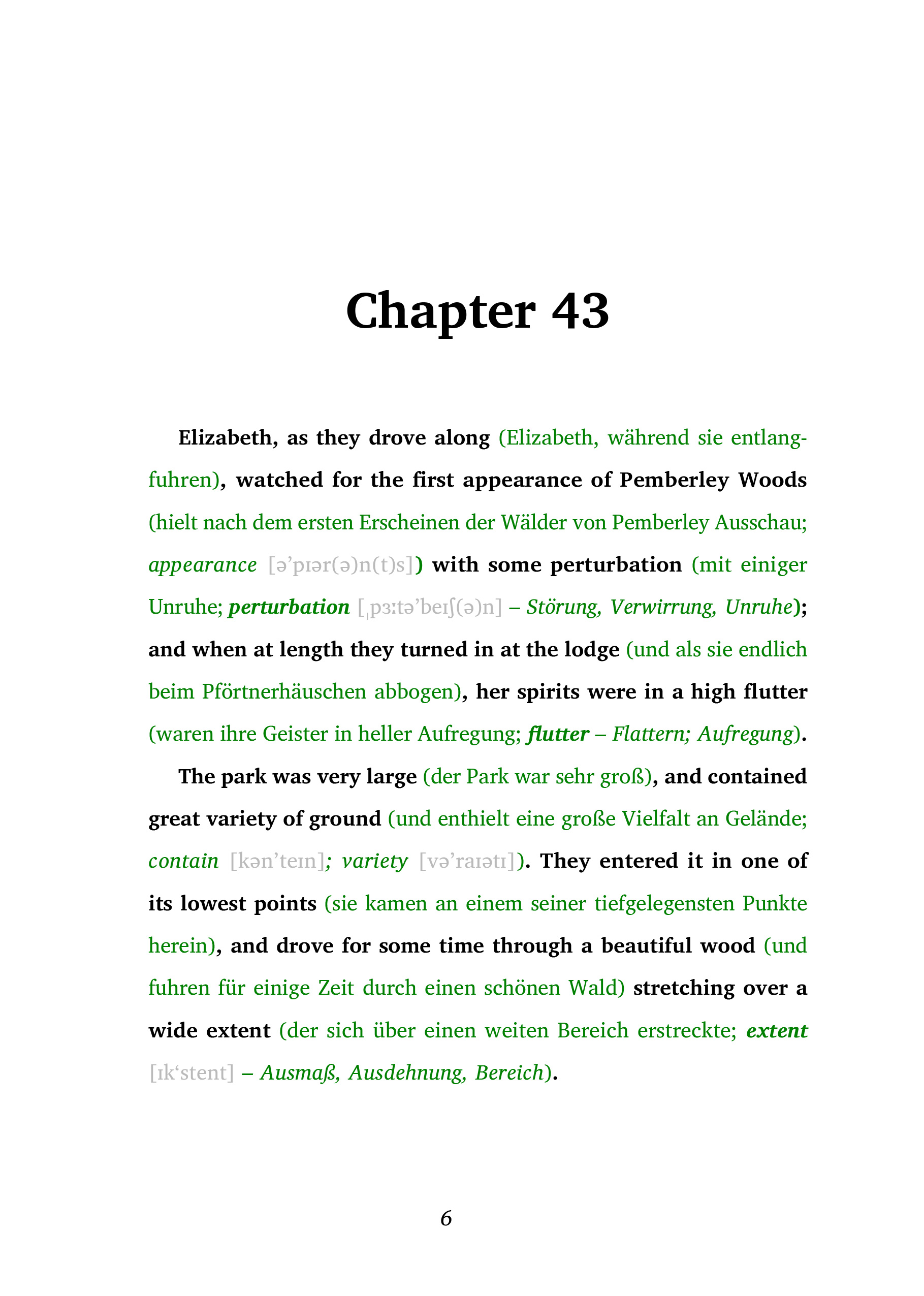 Entdecken Sie die Welt der Fremdsprachen auf eine ganz neue Weise mit der Frank-Lesemethode, perfekt für alle ab dem Sprachniveau A2. Diese innovative Methode kombiniert Originaltexte mit klaren, direkten Übersetzungen und bietet zusätzliche Erläuterungen direkt im Lesefluss, um ein tiefes Verständnis und schnelles Lernen zu fördern. Ob Sie Ihre Sprachkenntnisse verbessern oder in eine neue Sprache eintauchen möchten, diese Methode bietet ein einzigartiges und effektives Leseerlebnis. Dank der integrierten Hörbücher wird auch das Hörverständnis trainiert.Lesemethode von Ilya Frank ist ideal für alle, die ihre Sprachkenntnisse effektiv erweitern wollen, ohne den natürlichen Lesefluss zu unterbrechen.Erleben Sie die Romantik und den Scharfsinn der Regency-Ära neu mit der Hardcover-Ausgabe von Jane Austens "Pride and Prejudice". Diese edle Version des Klassikers bietet ein Leseerlebnis, das die Eleganz und den Geist der Geschichte in einer qualitativ hochwertigen Buchgestaltung einfängt.Die Geschichte von Elizabeth Bennet und Mr. Darcy, geprägt durch Missverständnisse, Stolz und Vorurteile, ist hier in einer Ausgabe zu Hause, die so beständig ist wie die Liebesgeschichte selbst. Mit festem Einband, sorgfältiger Bindung und zeitlosem Design wird diese "Pride and Prejudice"-Edition zum Herzstück Ihrer Sammlung.Bereichern Sie Ihr Regal mit einem Buch, das nicht nur ein Schatz der Literatur, sondern auch ein ästhetisches Statement ist. Es ist die perfekte Wahl für jene, die die Haptik eines richtigen Buches schätzen und eine Verbindung zur literarischen Vergangenheit herstellen möchten.Ob als Geschenk für einen Literaturliebhaber oder als Genuss für sich selbst, diese Hardcover-Ausgabe von "Pride and Prejudice" ist ein wahres Juwel.+ Pride and Prejudice / Stolz und Vorurteil - Teil 5+++ GRATIS "Eleganz der Natur" Schreibset:+ Lesezeichen+ Notizheft A6, 40 Seiten fein liniert+ Holzbleistift mit RadiergummiLeseprobe: https://easyoriginal.com/leseproben/DE20.pdfUngekürzter Originaltext. Zweisprachiges Buch Englisch-Deutsch mit Kommentaren.