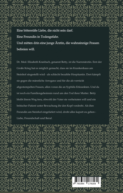 Eine bittersüße Liebe, die nicht sein darf.Eine Freundin in Todesgefahr.Und mitten drin eine junge Ärztin, die wahnsinnige Frauen befreien will.Dr. Med. Elisabeth Kranbach, genannt Betty, ist die Narrenärztin. Erst der Große Krieg hat es möglich gemacht, dass sie im Krankenhaus am Steinhof eingestellt wird - als schlecht bezahlte Hospitantin. Dort kämpft sie gegen die männliche Arroganz und für die als verrückt abgestempelten Frauen, allen voran die an Syphilis Erkrankten. Und da ist noch ein Familiengeheimnis rund um den Tod ihrer Mutter. Betty bleibt ihrem Weg treu, obwohl der Vater sie verheiraten will und ein britischer Patient unter Bewachung ihr den Kopf verdreht. Als ihre Freundin am Steinhof eingeliefert wird, droht alles kaputt zu gehen - Liebe, Freundschaft und Beruf.