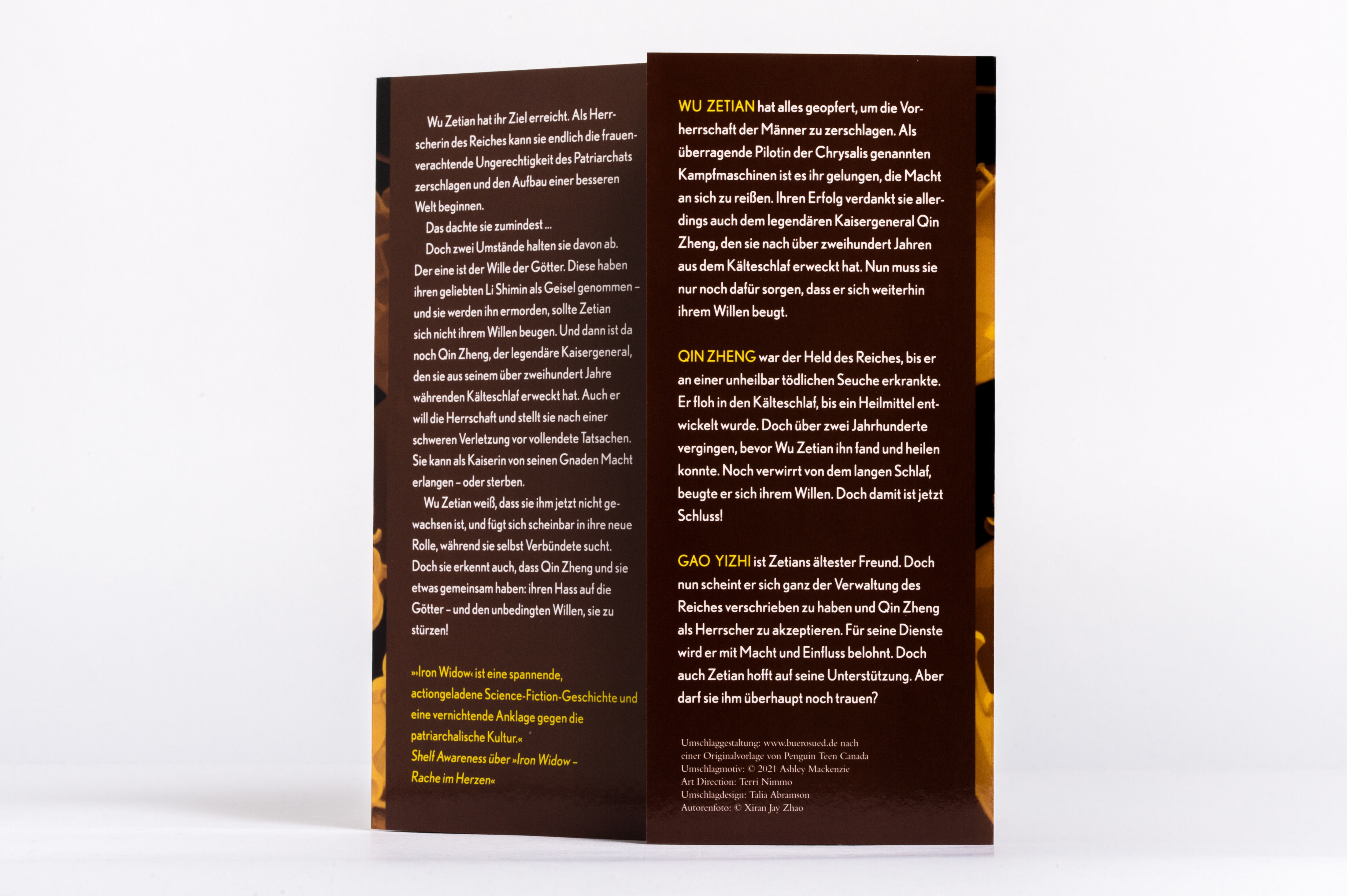 Xiran Jay Zhao ist dey Autore des »New York Times«-Platz-1-Bestsellers »Iron Widow«. Deys Bücher waren Finalisten oder Gewinner zahlreicher Preise, darunter die Nebula-, BFSA- und Locus-Awards. Aus einer chinesischen Kleinstadt stammend ist Zhao nach Vancouver, Kanada, eingewandert. Dey hat Biochemie studiert, wandte sich dann aber dem Schreiben von Büchern zu. Man findet Xiran Jay Zhao auf Twitter für Memes, auf Instagram für Cosplays und ausgefallene Outfits, auf TikTok für lustige Kurzvideos und auf YouTube für lange Videos über chinesische Geschichte und Kultur.