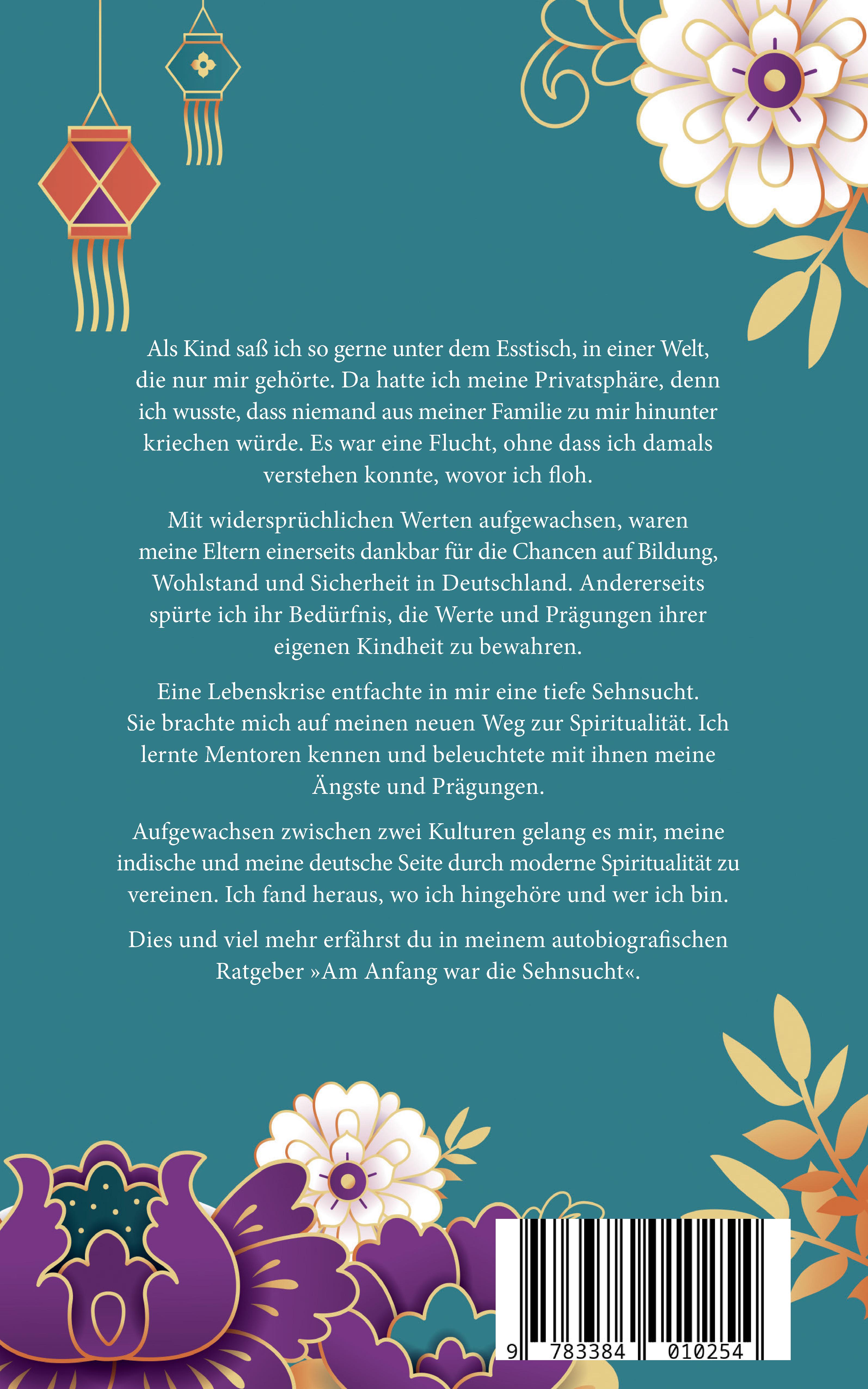Als Kind saß ich so gerne unter dem Esstisch, in einer Welt, die nur mir gehörte. Da hatte ich meine Privatsphäre, denn ich wusste, dass niemand aus meiner Familie zu mir hinunter kriechen würde. Es war eine Flucht, ohne dass ich damals verstehen konnte, wovor ich floh.Mit widersprüchlichen Werten aufgewachsen, waren meine Eltern einerseits dankbar für die Chancen auf Bildung, Wohlstand und Sicherheit in Deutschland. Andererseits spürte ich ihr Bedürfnis, die Werte und Prägungen ihrer eigenen Kindheit zu bewahren.Eine Lebenskrise entfachte in mir eine tiefe Sehnsucht. Sie brachte mich auf meinen neuen Weg zur Spiritualität. Ich lernte Mentoren kennen und beleuchtete mit ihnen meine Ängste und Prägungen. Dabei wurde mir bewusst, welche Rolle meine Ahnen spielen.Aufgewachsen zwischen zwei Kulturen gelang es mir, meine indische und meine deutsche Seite durch moderne Spiritualität zu vereinen. Ich fand heraus, wo ich hingehöre und wer ich bin.Dies und viel mehr erfährst du in meinem autobiografischen Ratgeber "Am Anfang war die Sehnsucht".