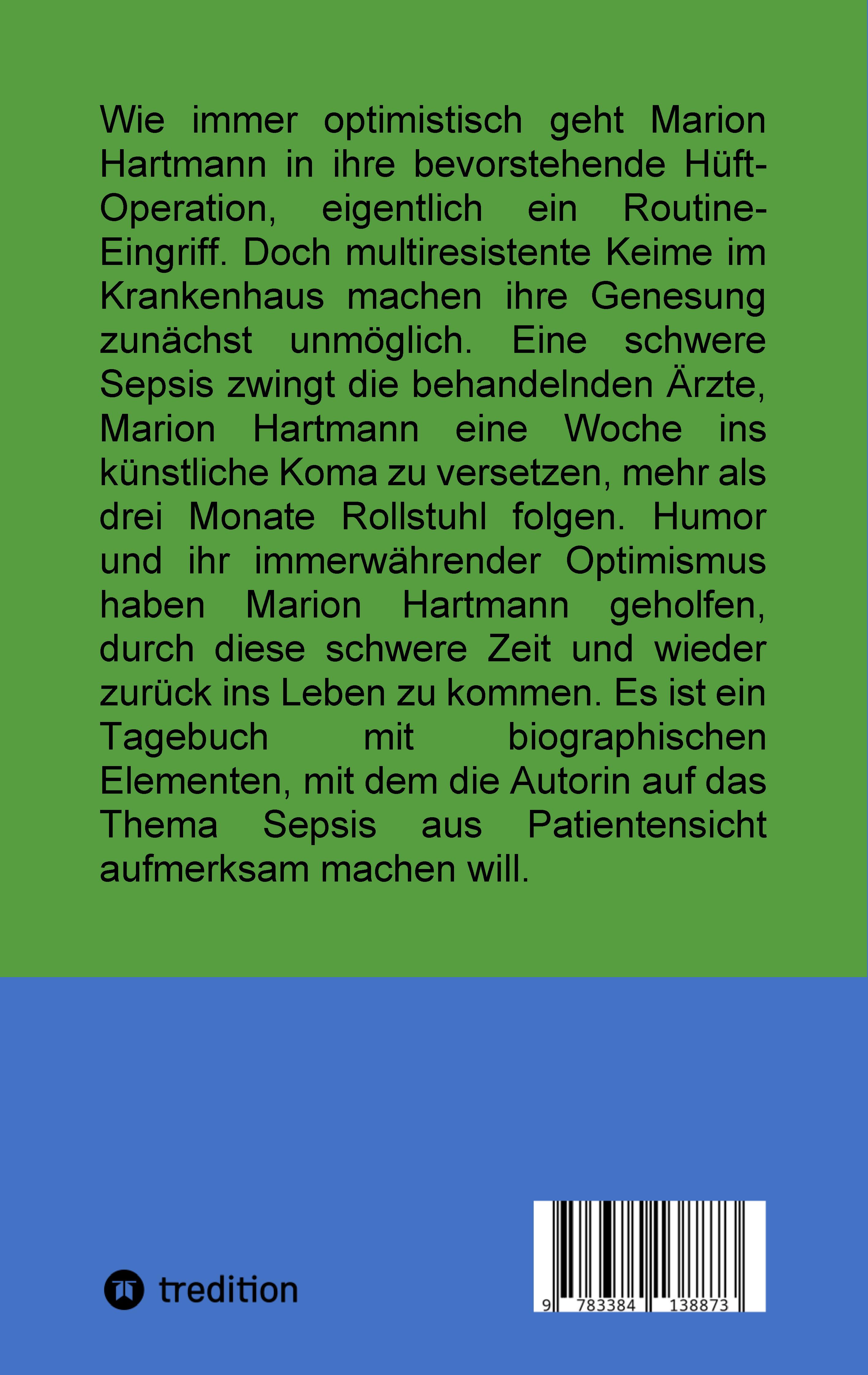 | Schlagworte | Antibiotika • Gesundheit • Hüft-OP • Hüft-TEP • Hygiene • Intensivstation • Koma • Krankenhaushygiene • Krankenhauskeim • Künstliches Koma • Multiresistente Keime • Selbstheilungskräfte • Sepsis |