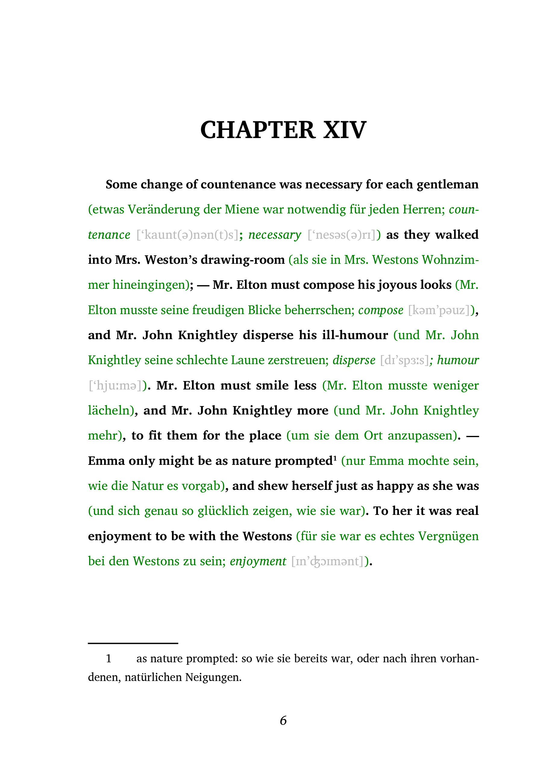 Entdecken Sie die Welt der Fremdsprachen auf eine ganz neue Weise mit der Frank-Lesemethode, perfekt für alle ab dem Sprachniveau A2. Diese innovative Methode kombiniert Originaltexte mit klaren, direkten Übersetzungen und bietet zusätzliche Erläuterungen direkt im Lesefluss, um ein tiefes Verständnis und schnelles Lernen zu fördern. Ob Sie Ihre Sprachkenntnisse verbessern oder in eine neue Sprache eintauchen möchten, diese Methode bietet ein einzigartiges und effektives Leseerlebnis. Dank der integrierten Hörbücher wird auch das Hörverständnis trainiert.Lesemethode von Ilya Frank ist ideal für alle, die ihre Sprachkenntnisse effektiv erweitern wollen, ohne den natürlichen Lesefluss zu unterbrechen."Emma" von Jane Austen ist ein zeitloser Klassiker, der mit scharfsinnigem Witz und einer unvergleichlichen Beobachtungsgabe die gesellschaftlichen Gebräuche und Liebesverwicklungen der englischen Landadelsgesellschaft des 19. Jahrhunderts beleuchtet. Im Zentrum steht die junge, intelligente und wohlhabende Emma Woodhouse, die sich selbst als begabte Heiratsvermittlerin sieht, obwohl ihre Bemühungen oft zu unvorhergesehenen Verstrickungen und romantischen Missverständnissen führen. Austens meisterhafte Erzählung, die gleichermaßen durch Tiefe und Humor besticht, entfaltet eine Welt, in der die Suche nach Liebe, Freundschaft und Selbstverständnis zu einer fesselnden Reise wird. "Emma" ist nicht nur eine Geschichte über die Irrungen und Wirrungen der Liebe, sondern auch ein scharfsichtiger Kommentar zu den Klassenunterschieden und sozialen Sitten ihrer Zeit. Tauchen Sie ein in dieses unvergessliche Meisterwerk, das auch heute noch Leserinnen und Leser auf der ganzen Welt begeistert und bewegt. Austens "Emma" ist ein unverzichtbarer Schatz in jeder Literatursammlung, der mit jeder Seite die feinen Nuancen menschlicher Beziehungen und die ewige Suche nach Glück offenbart.Leseprobe: https://easyoriginal.com/leseproben/DE32.pdfInnovative Lesemethode: https://easyoriginal.com/lesemethode/Ungekürzter Originaltext. Zweisprachiges Buch Englisch-Deutsch mit Audio-Online.