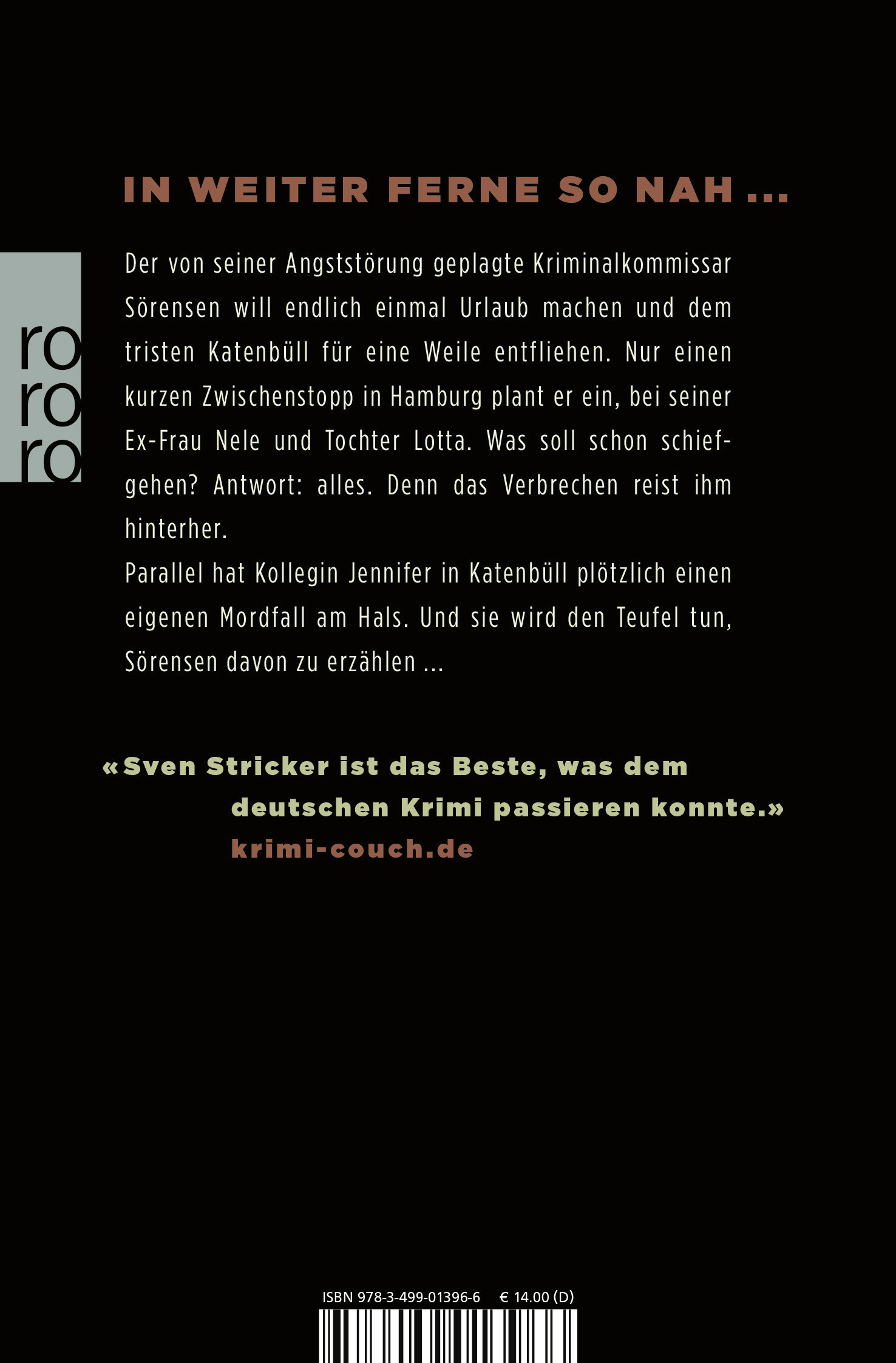 Der von seiner Angststörung geplagte Kriminalkommissar Sörensen will endlich einmal Urlaub machen und dem tristen Katenbüll für eine Weile entfliehen. Nach Österreich will er, in die Berge - schwimmen gehen. Nur einen kurzen Zwischenstopp in Hamburg plant er ein, bei seiner Ex-Frau Nele und Tochter Lotta. Was soll schon schiefgehen? Antwort: alles. Denn das Verbrechen reist ihm hinterher ...