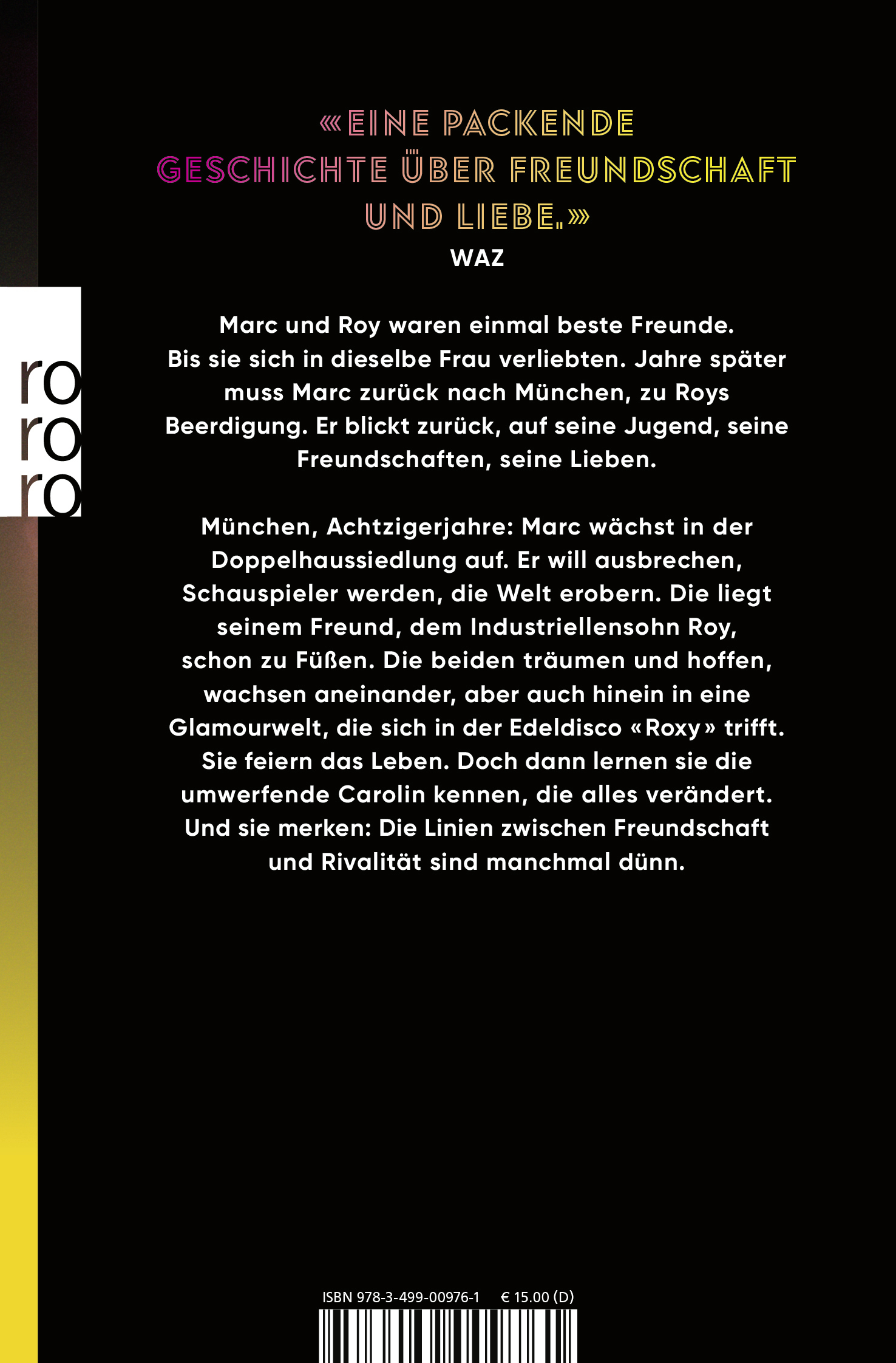 München, Achtzigerjahre: Marc wächst in der Doppelhaussiedlung auf. Er will ausbrechen, Schauspieler werden, die Welt erobern. Die liegt seinem Freund, dem Industriellensohn Roy - eigentlich Robert -, schon zu Füßen. Die beiden träumen und hoffen, wachsen aneinander, aber auch hinein in eine Glamourwelt, die sich in der Edeldisco «Roxy» trifft. Sie feiern das Dasein. Sie lernen die umwerfende Carolin kennen, die alles verändert. Und sie merken: Linien zwischen Freundschaft und Rivalität sind manchmal dünn.