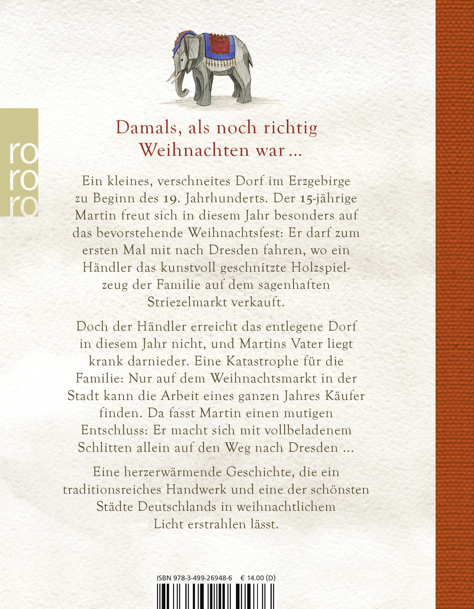 Ein kleines verschneites Dorf im Erzgebirge zu Beginn des 19. Jahrhunderts. Der 15-jährige Martin freut sich in diesem Jahr besonders auf das bevorstehende Weihnachtsfest: Er darf zum ersten Mal mit nach Dresden fahren, wo ein Händler das kunstvoll geschnitzte Holzspielzeug der Familie auf dem sagenhaften Striezelmarkt verkauft. Doch der Händler erreicht das entlegene Dorf in diesem Jahr nicht, und Martins Vater liegt krank darnieder. Eine Katastrophe für die Familie: Nur auf dem Weihnachtsmarkt in der Stadt kann die Arbeit eines ganzen Jahres Käufer finden. Da fasst Martin einen mutigen Entschluss: Er macht sich mit voll beladenem Schlitten alleine auf den Weg nach Dresden ...