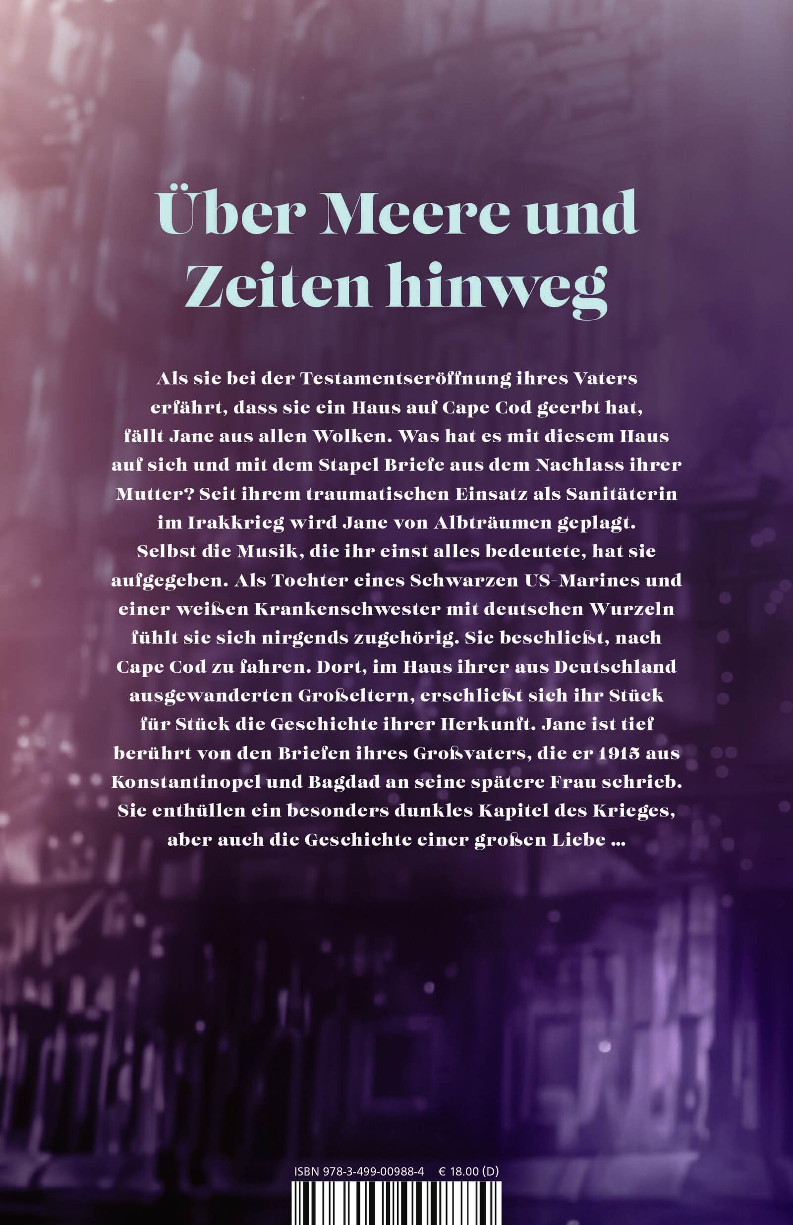 Als sie bei der Testamentseröffnung ihres Vaters erfährt, dass sie ein Haus auf Cape Cod geerbt hat, fällt Jane aus allen Wolken. Was hat es mit diesem Haus auf sich und mit dem Stapel Briefe - auf Deutsch verfasst - aus dem Nachlass ihrer Mutter? Seit ihrem traumatischen Einsatz als Sanitäterin im Irakkrieg wird Jane von Albträumen geplagt. Selbst die Musik, die ihr einst alles bedeutete, hat sie aufgegeben. Die Tochter eines schwarzen US Marines und einer weißen Krankenschwester mit deutschen Wurzeln fühlt sie sich nirgends zugehörig. Während sie das Haus auf Cape Cod ausräumt, das ihren aus Deutschland ausgewanderten Großeltern gehörte, erschließt sie sich Stück für Stück die Geschichte ihrer Herkunft. Vor allem die Briefe berühren sie zutiefst. Sie schrieb ihr Großvater 1915 aus Bagdad an seine spätere Frau. Ein besonders dunkles Kapitel der Geschichte entblättert sich, aber auch die Geschichte einer großen Liebe ...