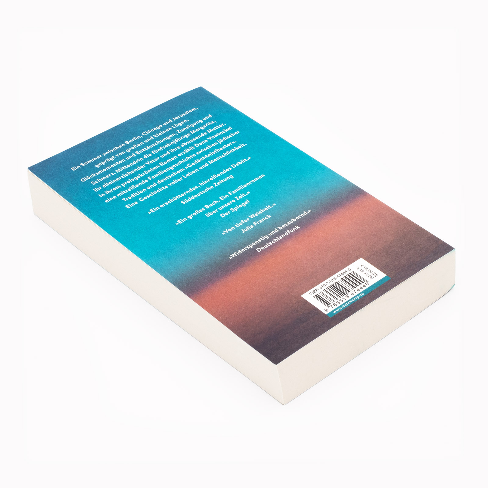 | Schlagworte | Antisemitismus • Berlin • Booktok • Chicago • Coming of Age • Entwicklungsroman • Familie • Freundschaft • Gedenken • Hebräisch • Holocaust • Identität • Ingeborg-Bachmann-Wettbewerb • Israel • Judentum • Jüdisches Leben • Liebe • Nominierung Preis der Leipziger Buchmesse • Romandebüt • Sexualität • Sprache • ST 5444 • ST5444 • suhrkamp taschenbuch 5444 |