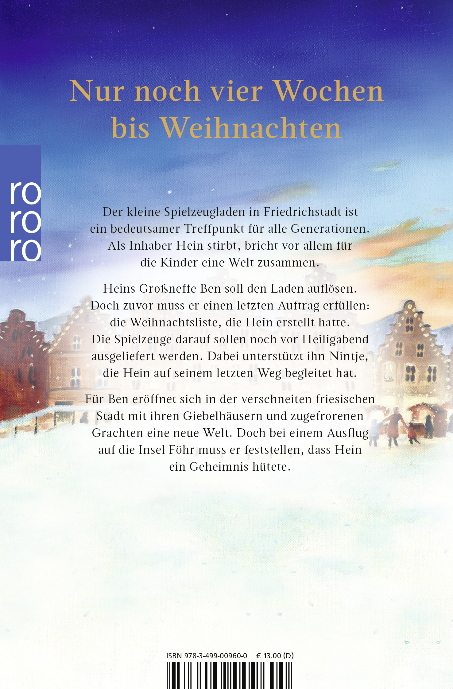 Der kleine Spielzeugladen in Friedrichstadt ist ein bedeutsamer Treffpunkt für alle Generationen. Als Inhaber Hein stirbt, bricht vor allem für die Kinder eine Welt zusammen. Und wo wird nun der traditionelle Weihnachtsbasar stattfinden? Heins Großneffe Ben soll den Laden auflösen. Doch zuvor muss er einen letzten Auftrag erfüllen: die Weihnachtsliste, die Hein erstellt hatte. Die Spielzeuge darauf sollen noch vor Heiligabend ausgeliefert werden. Dabei unterstützt ihn Nintje, die Hein auf seinem letzten Weg begleitet hat.