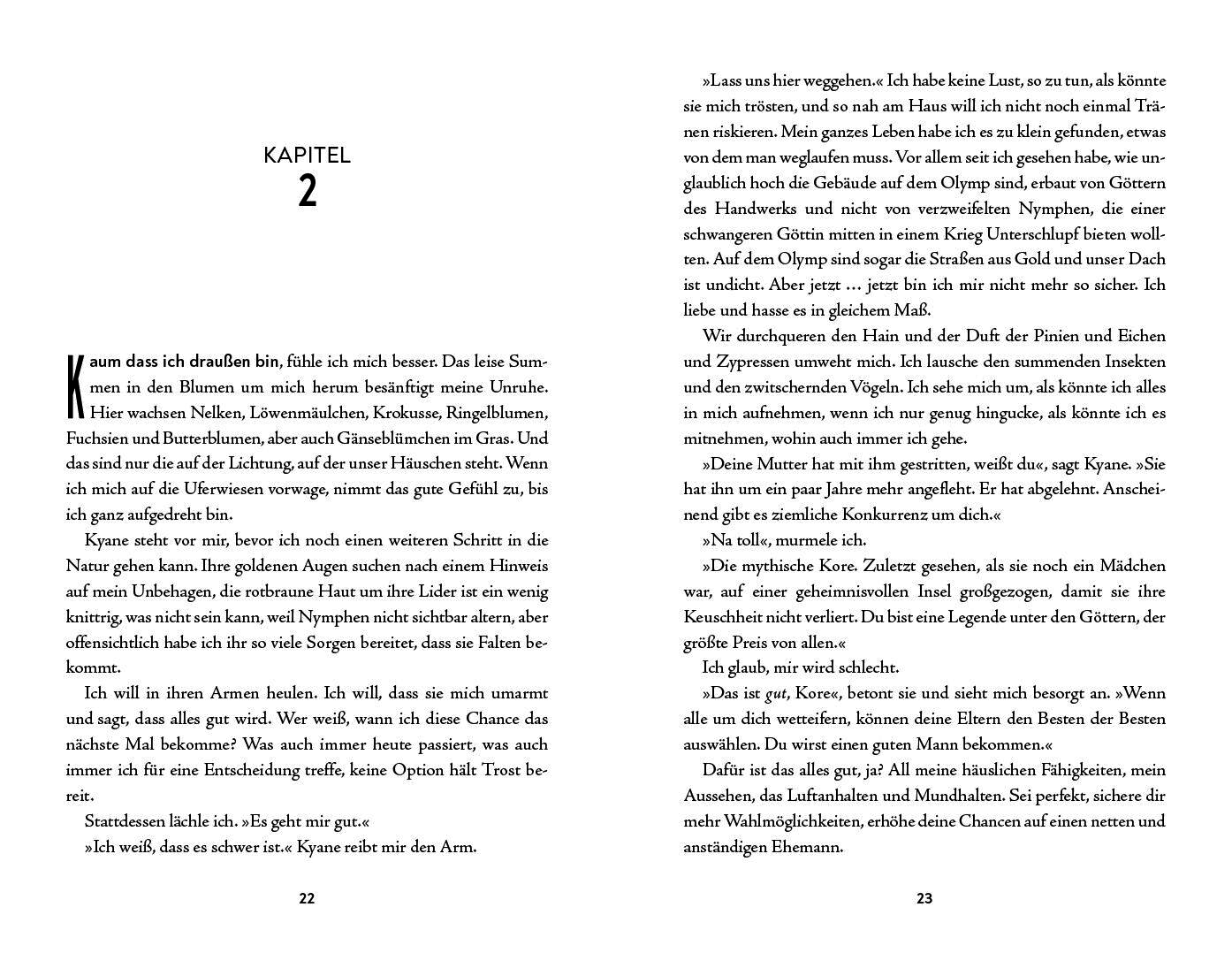 Persephone wurde nicht geraubt, sie ist in die Unterwelt geflohen. Dort hat weder ihr Vater Zeus noch ihre Mutter Demeter Macht über sie. Um keinen Preis will sie an irgendeinen Gott verheiratet werden, der sich selbst mehr liebt als sie. Jetzt muss sie den abweisenden und unerwartet attraktiven Hades davon überzeugen, mit ihr gemeinsames Spiel zu machen. Persephone hat einen Plan, der den Olymp bis ins Mark erschüttern wird ...